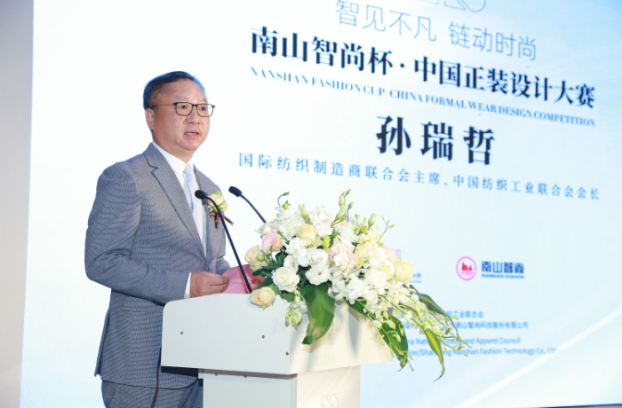 中国纺织工业联合会会长孙瑞哲在发言中表示,设计是生产力,时尚产业的价值内核是设计。知识经济语境下,设计集成科技创新与文化创意,推动产业升级、引领消费升级、促进价值升级。以高质量发展促进共同富裕是时代的潮流。把握时尚设计的新特征、新趋势,提升原创设计能力,不断满足人民物质与精神需求,不仅是实现共同富裕的应有之义,也是行业实现中国制造向中国创造、中国速度向中国质量、中国产品向中国品牌转变的关键所在。中国设计力量的培育,需要与产业生态融合,将设计转化为现实生产力;需要与市场需求适配,将设计转化为实际消费力;需要与时代价值一致,将设计转化为文化感召力。正装是现代人类文明的重要标志,是国际社交礼仪最具代表性的服装品类。本次大赛以正装为切入点,为新设计力量、新设计方法、新设计理念提供了一个交流比较、切磋砥砺的平台。