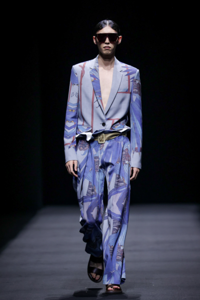 在这一系列中,设计师尽情利用不对称剪裁、拼接撞色、布料重组等创作手法重新演绎出品牌核心的武侠精神,时而慵懒恣意,时而利落飒爽,犹如刚柔并济的女性拥有许多不为人知的面向与角度。众多融入自然景观和动植物的花型图案设计增添了迷幻的现实主义浪漫,古典而层次丰富的提花与老花面料则唤醒复古力量,创作出一种优雅浪漫的奢华既视感。