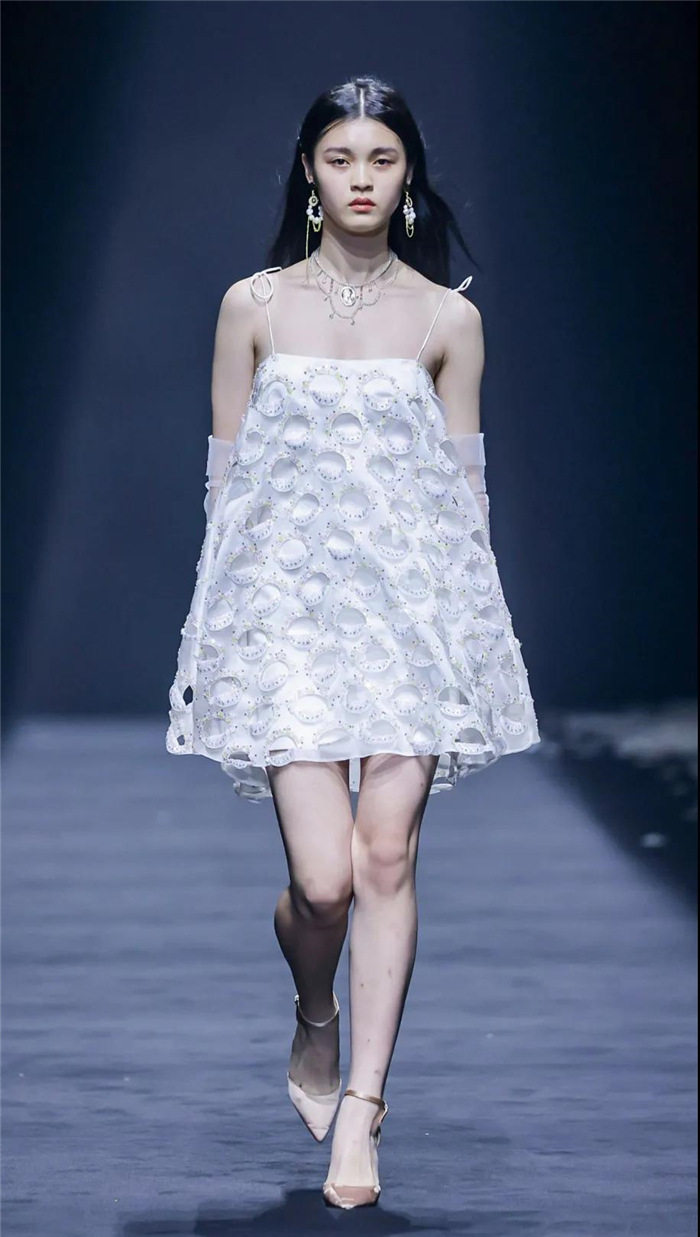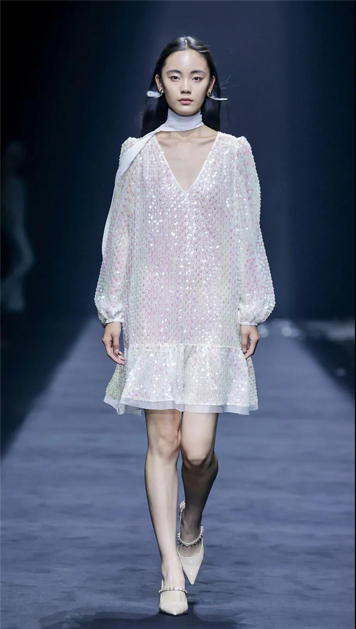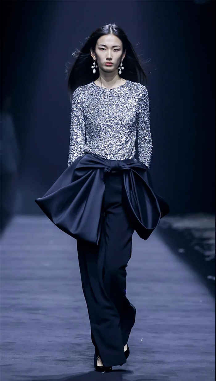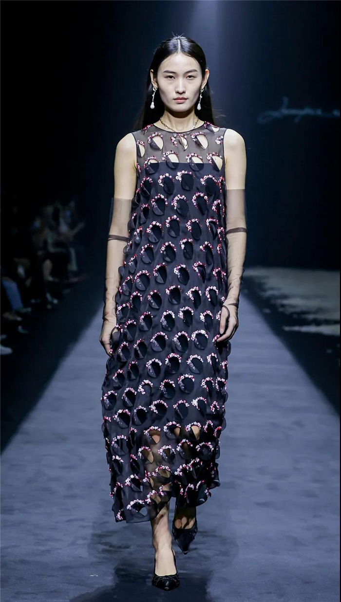 本季设计作品以多次艺术创作的面料为载体,将精巧别致的刺绣语言化为别出心裁的表现形式。璀璨夺目的闪耀珠绣细节,吸睛全场。在风尚型格、穿着态度和设计理念的交汇处,优雅诗意跃然而出。