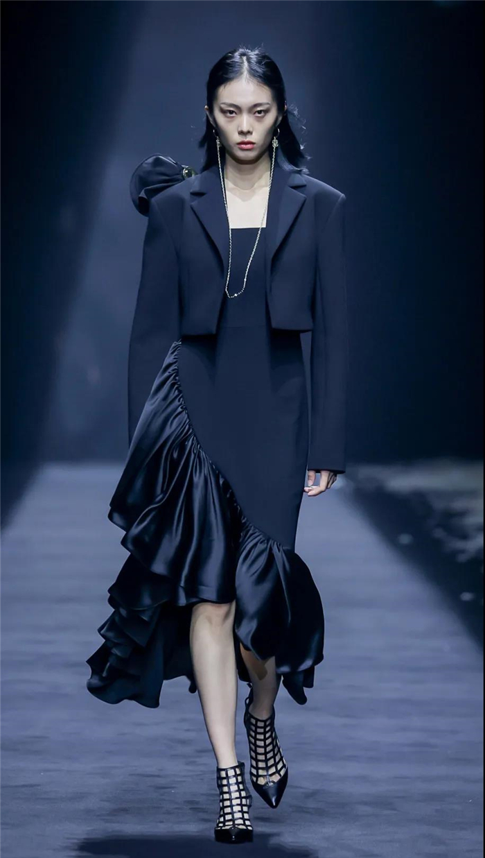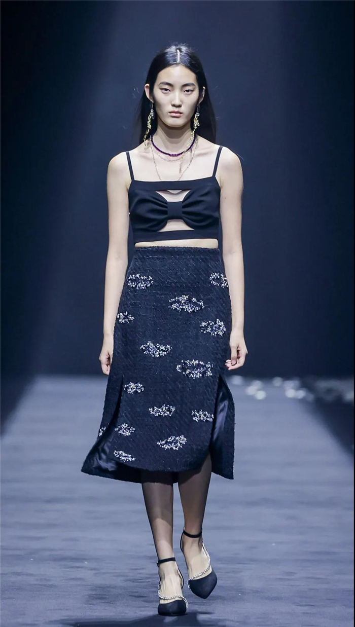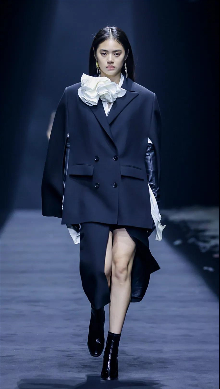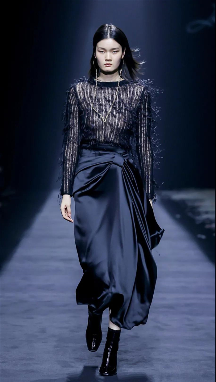 立体裁剪的扭褶针织体现了时装的多样性。水洗牛仔面料上的刺绣工艺表现了时尚的先锋态度。