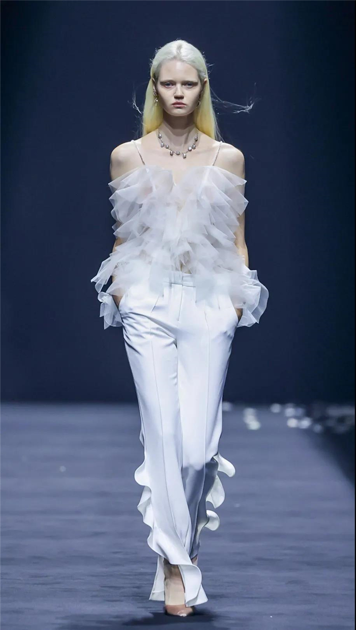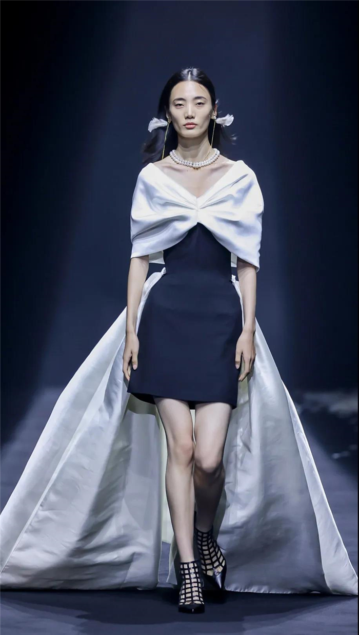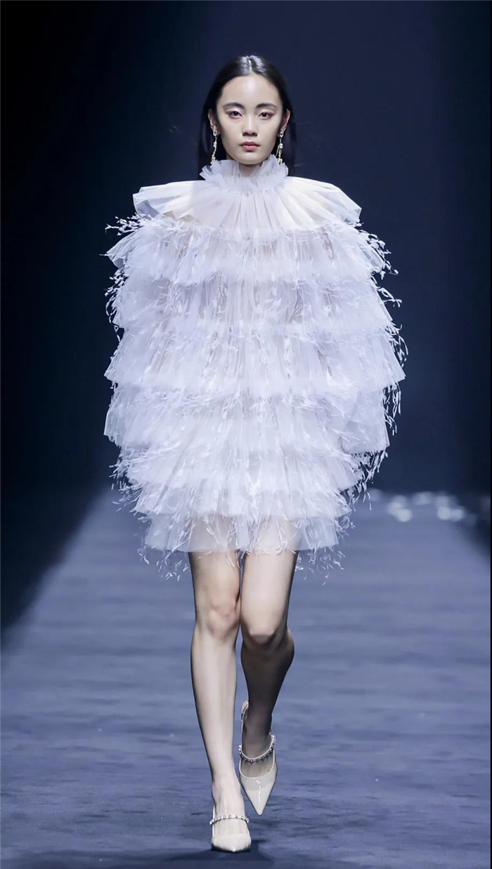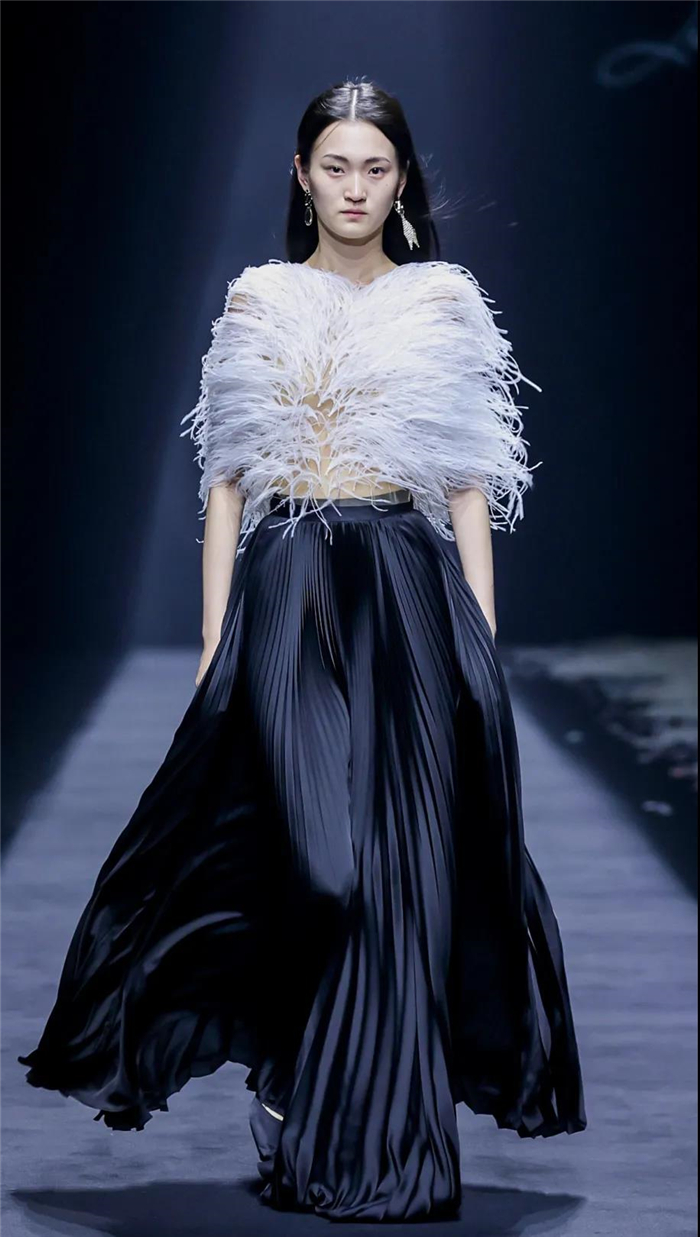 JUMPER ZHANG高级手工工坊系列。品牌经典的蝴蝶结元素以立体质感装点于高级时装之上,兼具优雅格调与白幼气质;经久不衰的飘逸鸵鸟羽毛元素与闪耀的重工珠绣设计尽显奢华,体现品牌极致的浪漫与优雅。