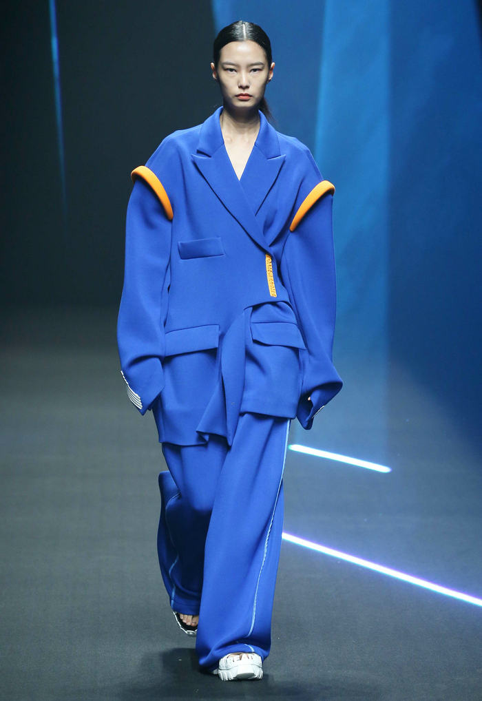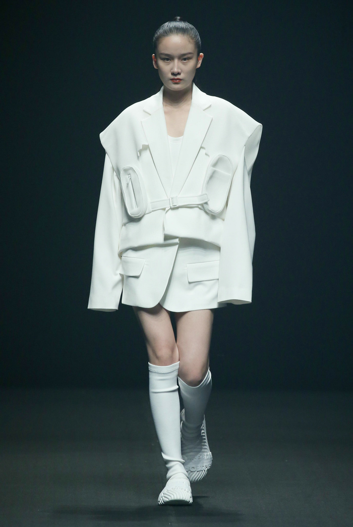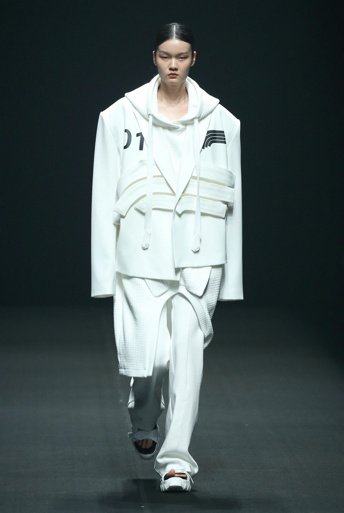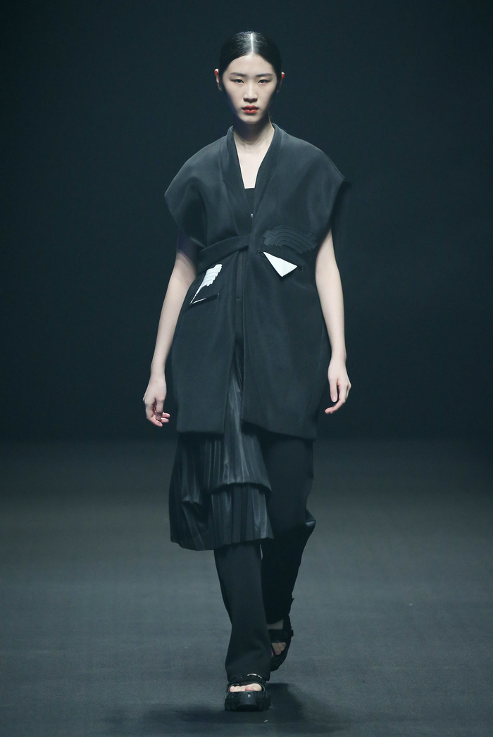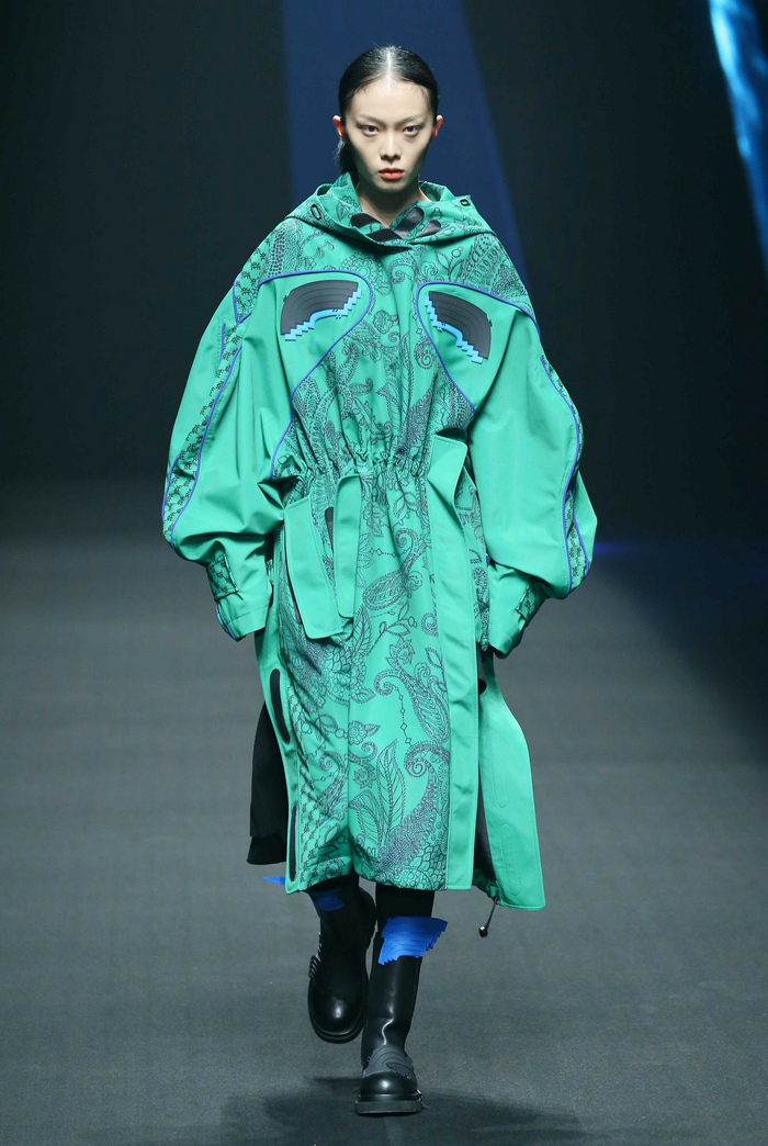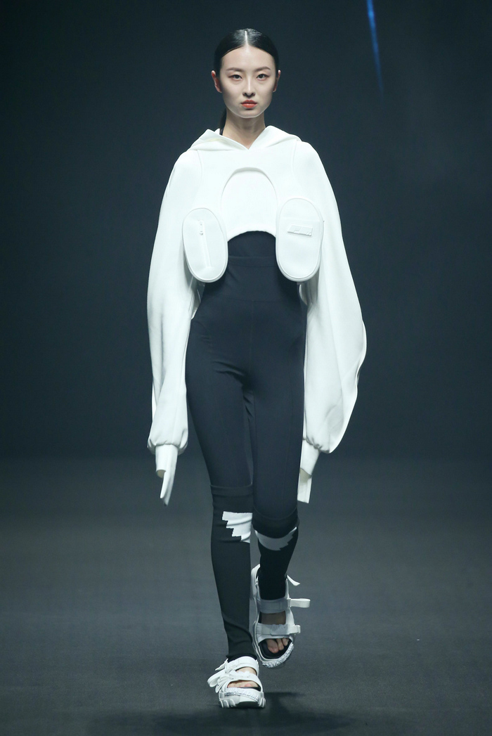 本季系列以活跃的年轻群体思维出发,展现群体乐活和科技生活为主的多层次生活方式。作品运用环保材料及立体裁剪经过超大号处理表现解构式的成衣效果,强调舒适及视觉冲击力,展现立体维度和空间的碰撞。色调演绎和后工艺处理,充分体现服装的多层次性。产品整体满足年轻一代对当下服装功能属性、身份认同、精神气质、自由表达和信仰特质的需求。
