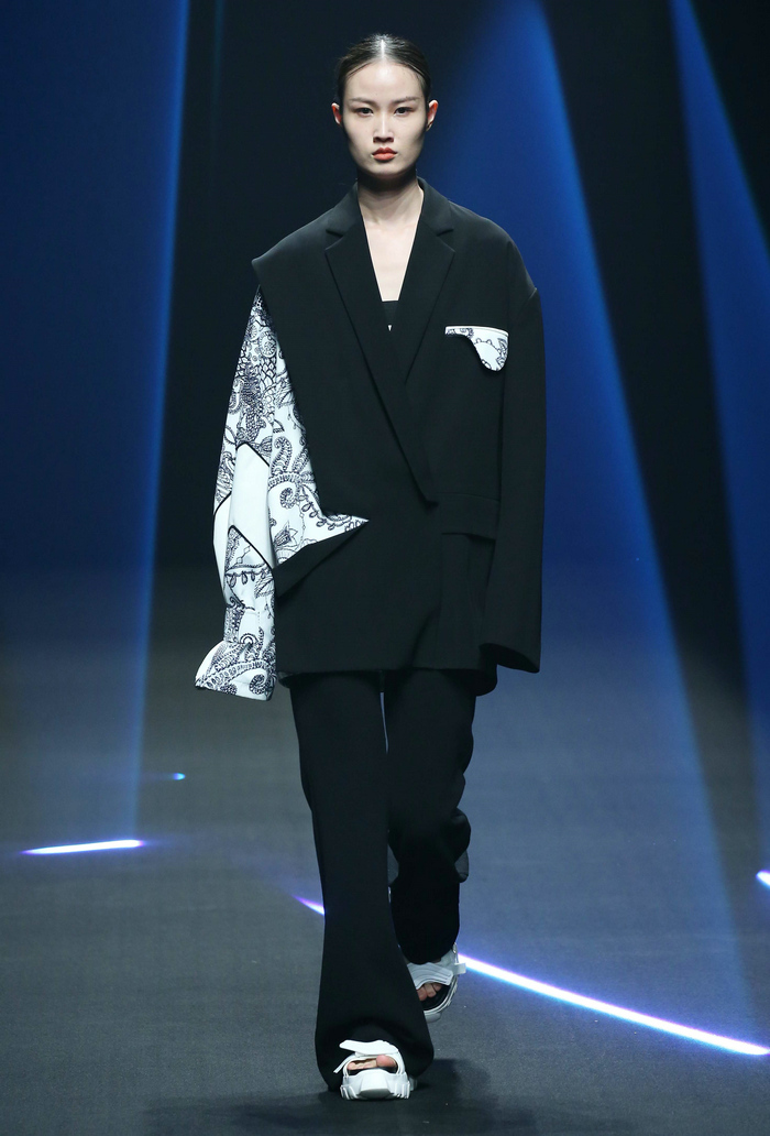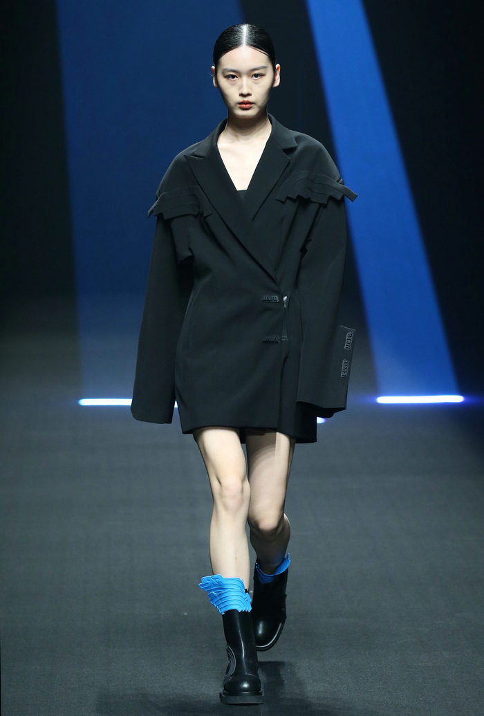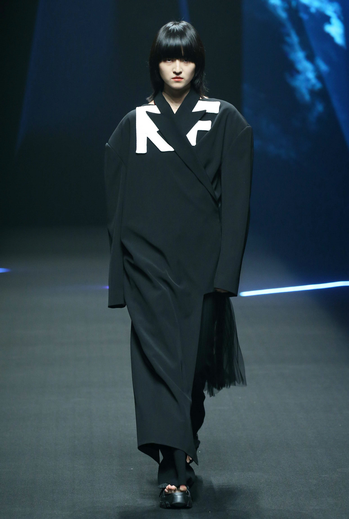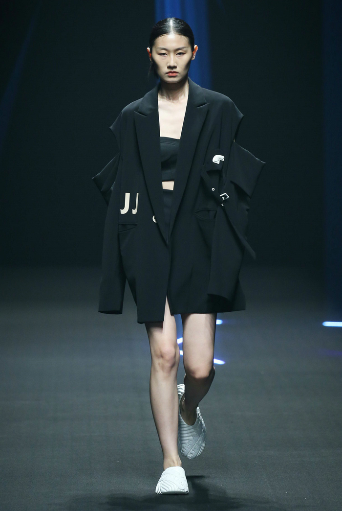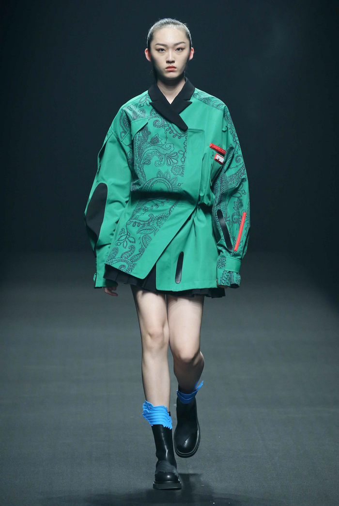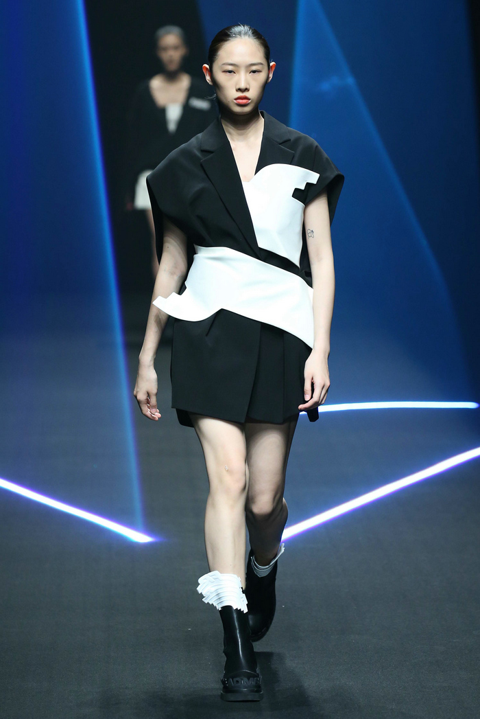 本季系列以活跃的年轻群体思维出发,展现群体乐活和科技生活为主的多层次生活方式。作品运用环保材料及立体裁剪经过超大号处理表现解构式的成衣效果,强调舒适及视觉冲击力,展现立体维度和空间的碰撞。色调演绎和后工艺处理,充分体现服装的多层次性。产品整体满足年轻一代对当下服装功能属性、身份认同、精神气质、自由表达和信仰特质的需求。