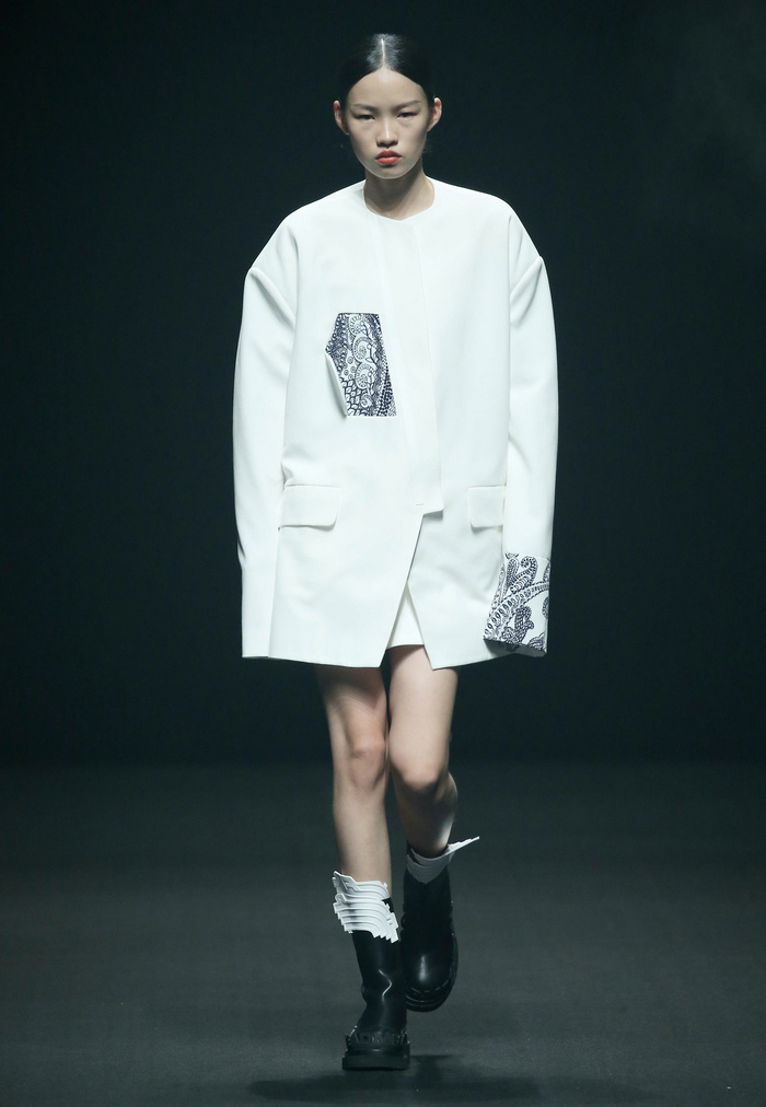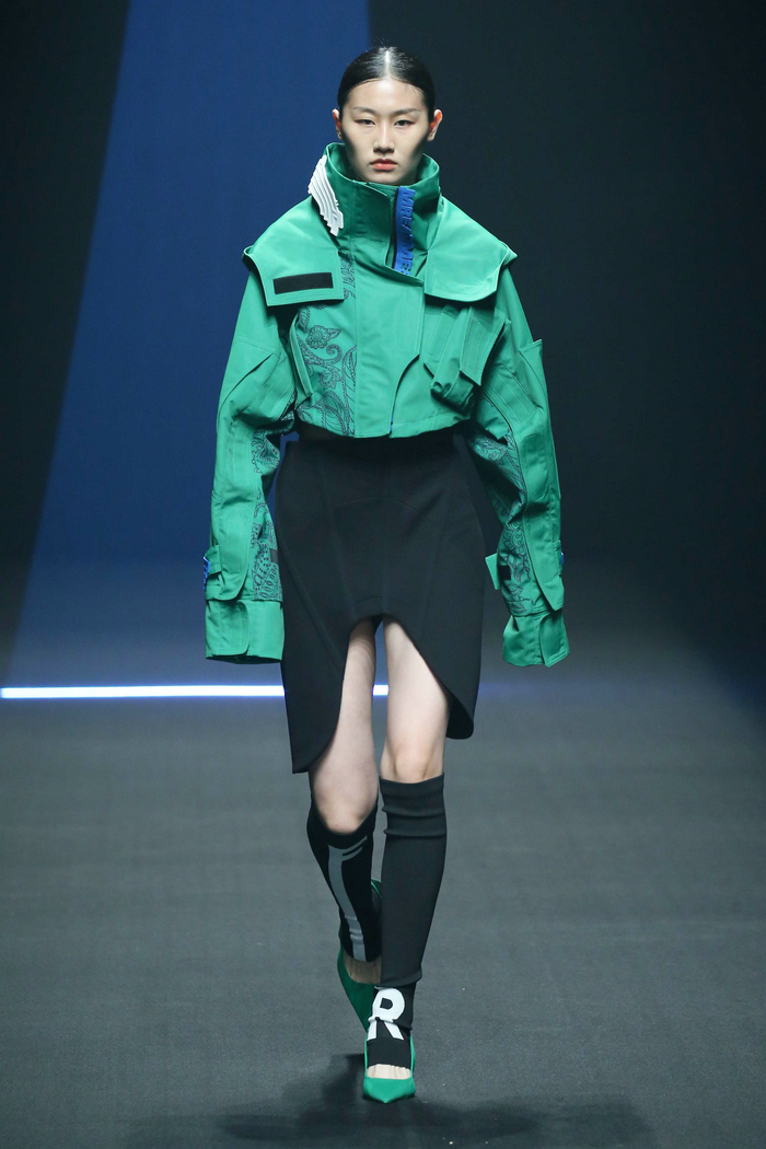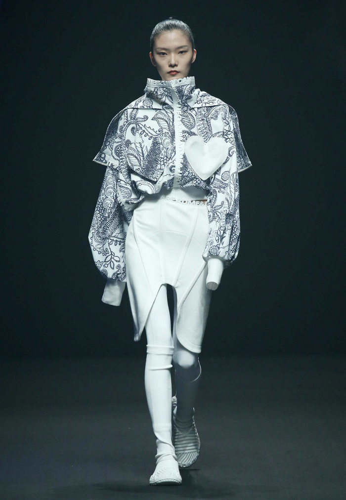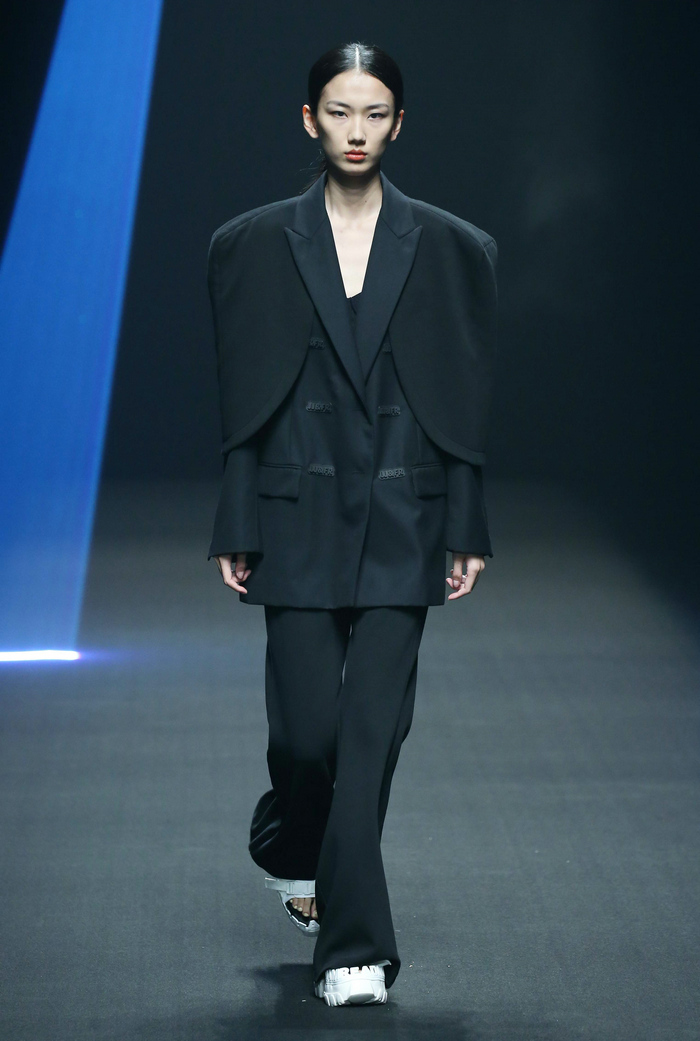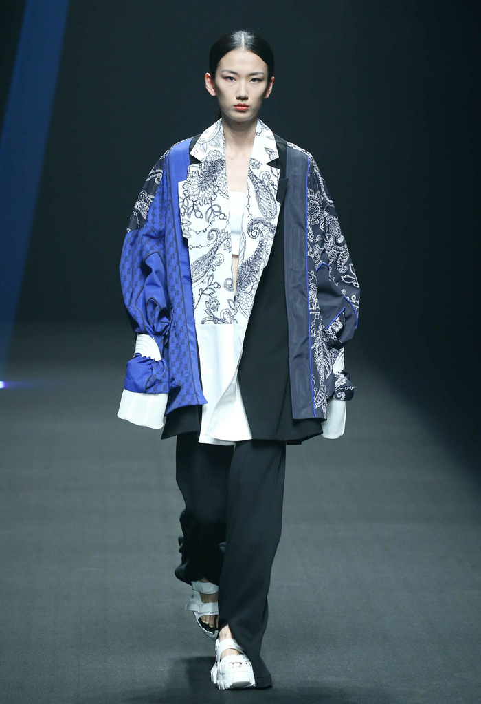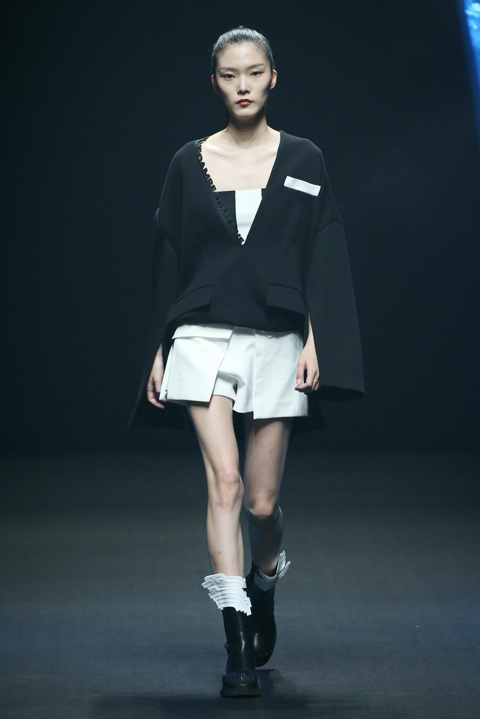 本季系列以活跃的年轻群体思维出发,展现群体乐活和科技生活为主的多层次生活方式。作品运用环保材料及立体裁剪经过超大号处理表现解构式的成衣效果,强调舒适及视觉冲击力,展现立体维度和空间的碰撞。色调演绎和后工艺处理,充分体现服装的多层次性。产品整体满足年轻一代对当下服装功能属性、身份认同、精神气质、自由表达和信仰特质的需求。