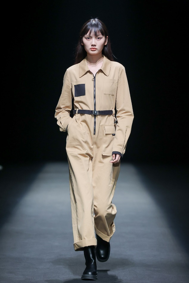 第二系列从自然中提取柔和色调,大量运用线性元素进行重组设计,还原简单而纯粹的自然细致纹理。面料工艺上选用质地轻柔、光亮的舒适织物,使整体造型流畅优雅。