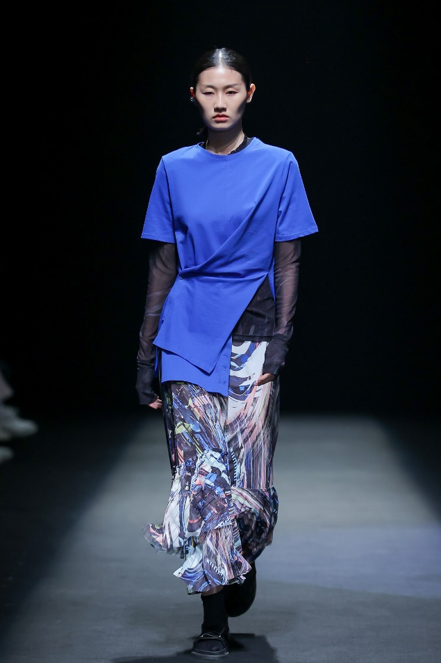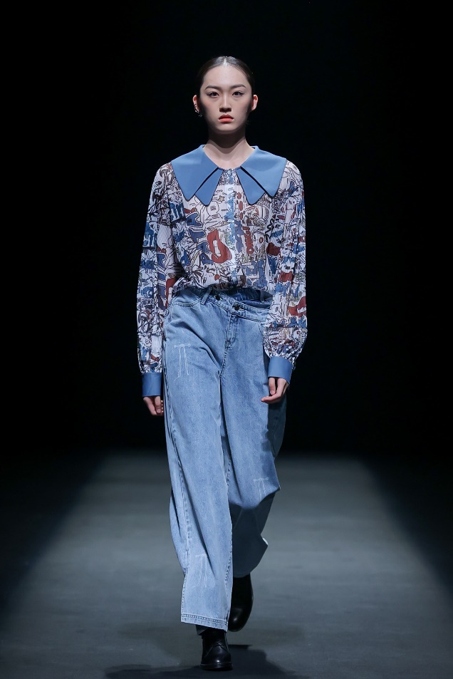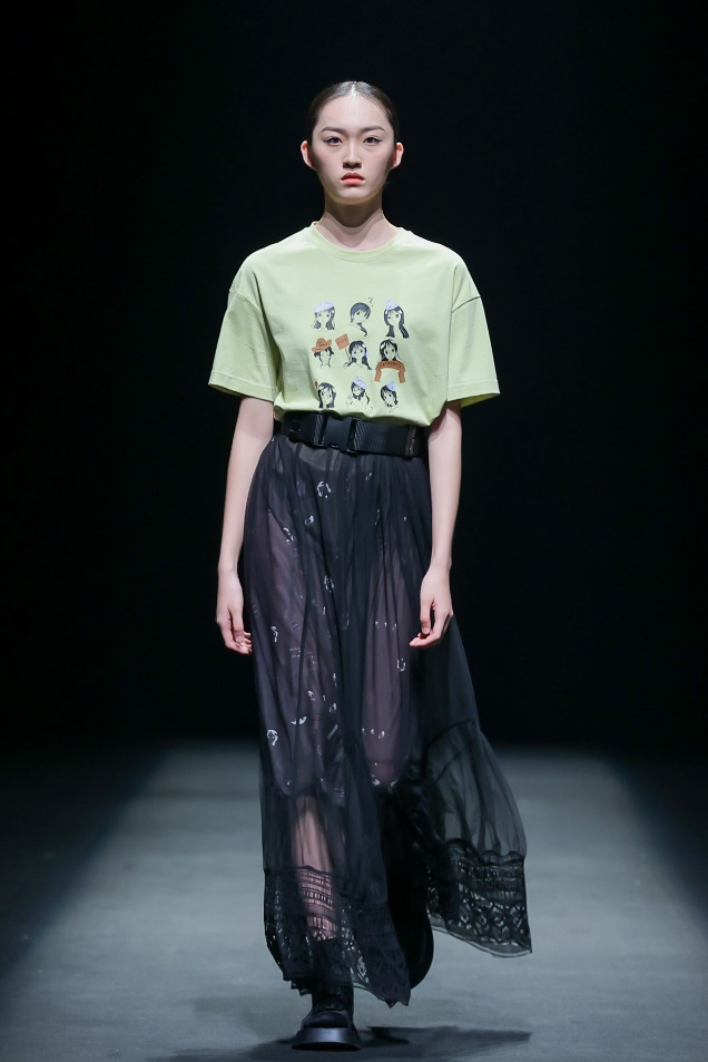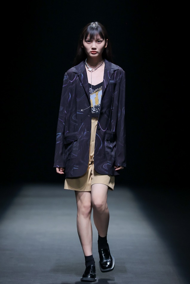 设计师本季将不同图案元素融入三个系列。第一系列以满印加局部图案的设计手法,展现二次少女漫画风,以不规则廓形为基底,搭配拼接设计,用多元碰撞的时尚态度展现品牌的年轻特质。