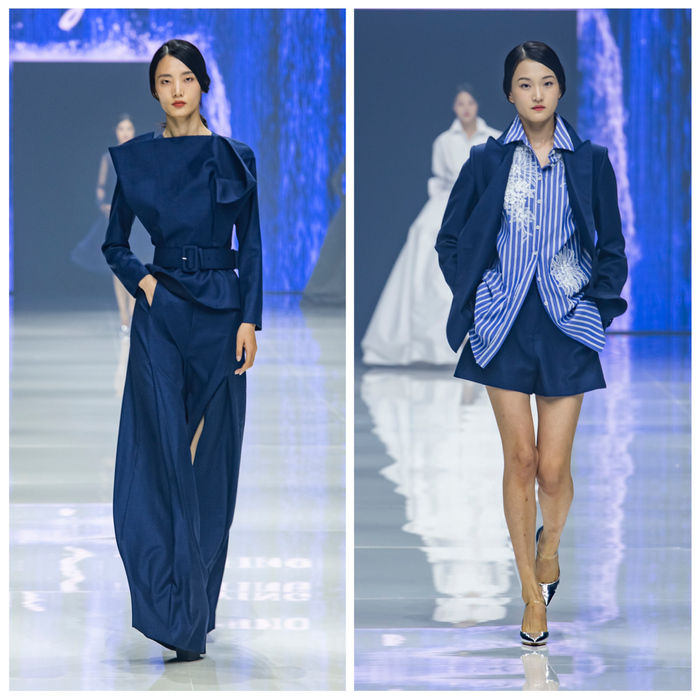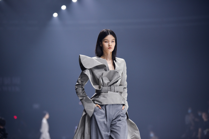 在作品呈现上,主打半休闲的款式设计,着力营造飘逸感,为歌中歌女性带来更多自由清澈、无所烦扰的感受。主色调选取高级灰、静谧蓝的搭配,开阔而又平静,主张在都市中带上旅行的心境,享受每一天;加入西裤、短裤的中性元素,意在拥抱突破,享受旅途的不确定性。