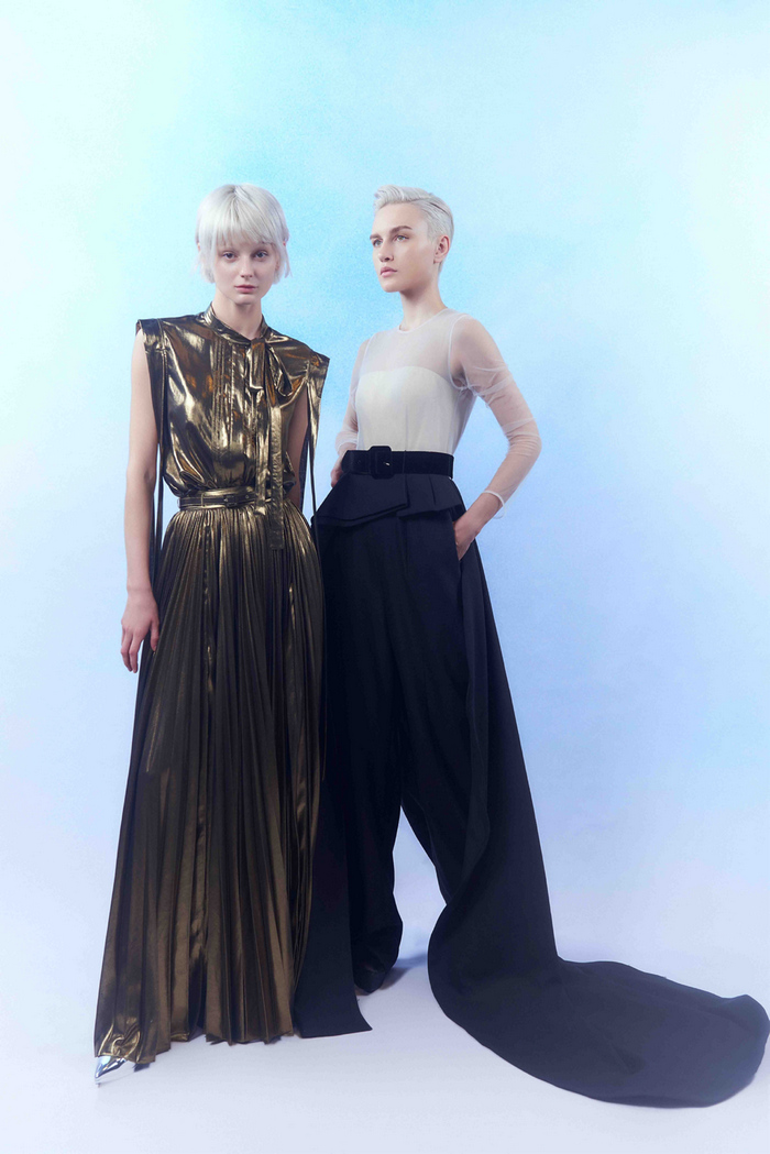 从细节处不难发现,糅合以毛料、欧根纱、雪纺、蕾丝、手工刺绣的传统面料,又有新颖的海洋、沙漠元素的面辅料开发运用,针线之中,流露出设计团队对于自然的提炼,以及对传统与未来的深邃思考。