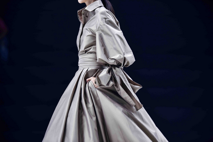 值得一提的是,高定工艺的严谨性依旧贯穿在联名系列作品创作和呈现的始终。把高定的造型、廓形版式带到成衣中并不轻松,需要设计师、版师之间的大量沟通和协调。得益于与Song of Song歌中歌初次大秀的成功基础,再度合作时默契感、共鸣性更近一步,对服装理解的步调更为一致。
