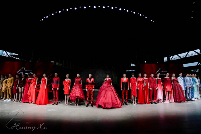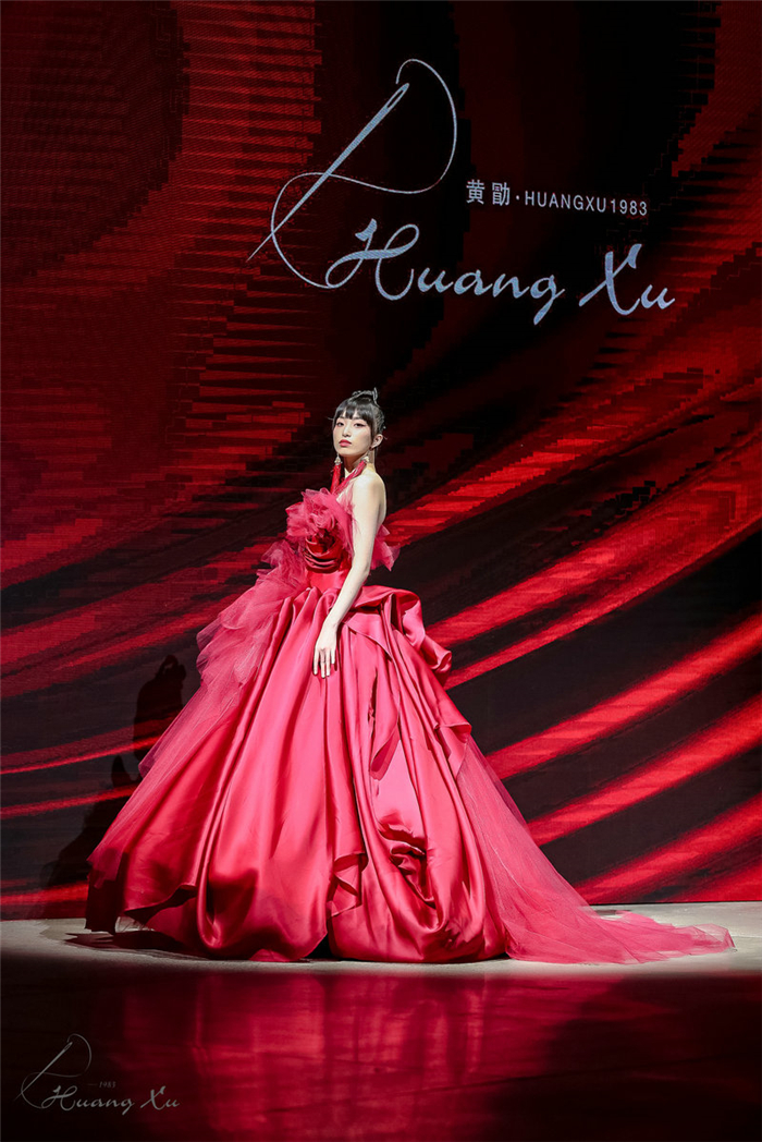 大秀在中国红的“和”慧篇章中结束,聚集几百工时的压轴华服,传递出庄严典雅的东方美学,奏响这场大运河时尚交响曲的最后一个强音。黄勖以标志性设计风格与独特视角重新演绎了大运河文化“和融万物、和谐共生”的文明基因,点燃积蓄千年的盛世风度,赞叹京杭大运河在民族融合、文明进步、经济发展、文化繁荣、水利建造中留下的煌煌贡献。