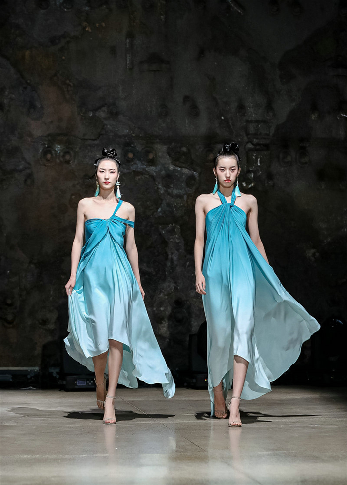 为忠实反映京杭大运河的史诗风情,黄勖历时数月,沿运河起点—杭州拱宸桥一路北上采风,挥洒对传统意象的敏锐天赋,将所历人文风貌与时尚元素糅杂沉淀,凝结为这场漫溯2500余年的大运河文化“和”个人作品大秀,融事、景、情于一体,带领大众乘衣而航、溯游千里,以服饰艺术完成对文化遗产的精致重构,致意壮美山河、光耀运河文化。