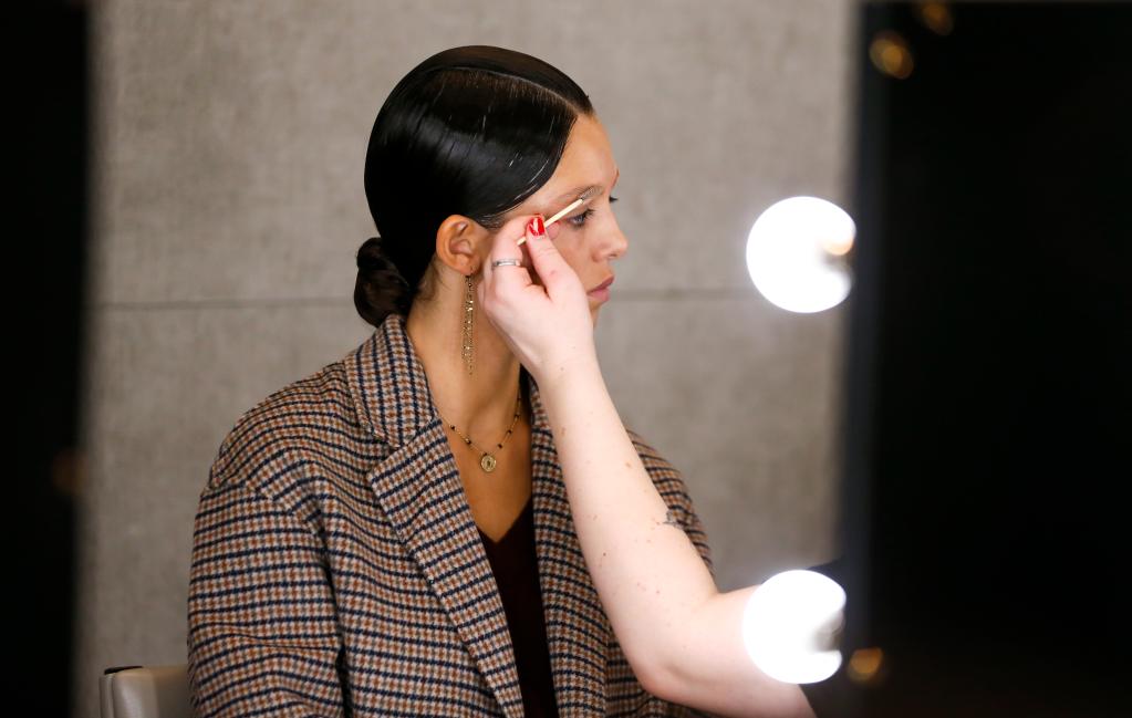 9月21日,模特在英国伦敦时装周后台为理查德·奎因品牌走秀做准备。 新华社记者 韩岩 摄