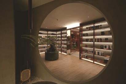 就在最近,继上海中心的朵云书院受到好评,设计师俞挺又在位于市中心的新开商业综合体中打造了一家“二酉书店”。二酉书店得名于大酉山和小酉山,两者是中国文化传续的象征。在这个空间之中,俞挺同样动用了种种象征手法,连续不断的酒红色穿孔铝板形成的洞口以及书架形成的各种可以坐下来的角落和空间,犹如环环相扣的“山洞”,等待人们揭晓“隐藏”其中的秘籍。中国传统园林设计的基本手法步步有景,在这里得以体现,水井、山石、翠松,以及用巧妙手法隔断形成的秘境,让这里成了上海浮华闹市中的洞天福地。