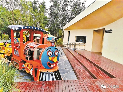 公园不允许骑车,但小朋友可以玩滑板车,公园里也没有租用的观光车。松林栈道服务中心门外停放着一列小火车,或许以后会增设游园小火车项目。