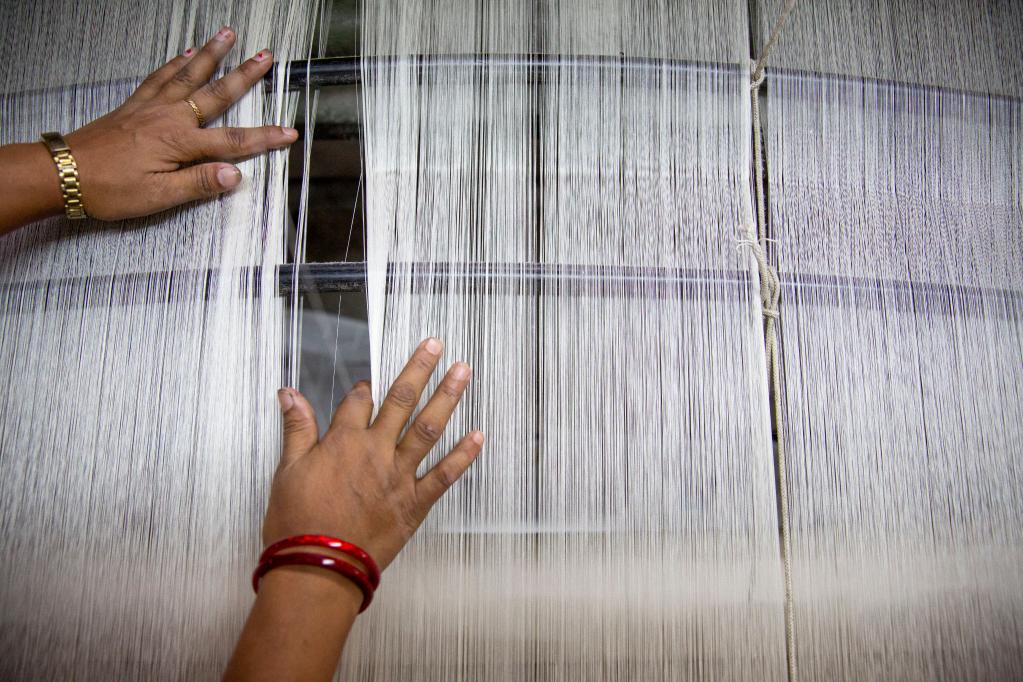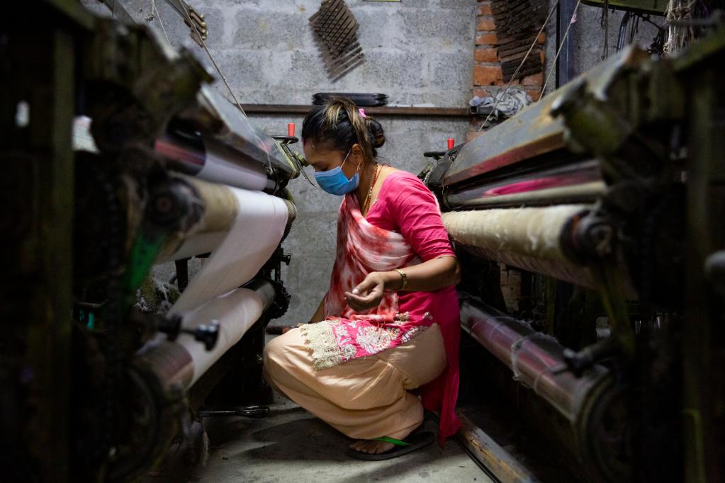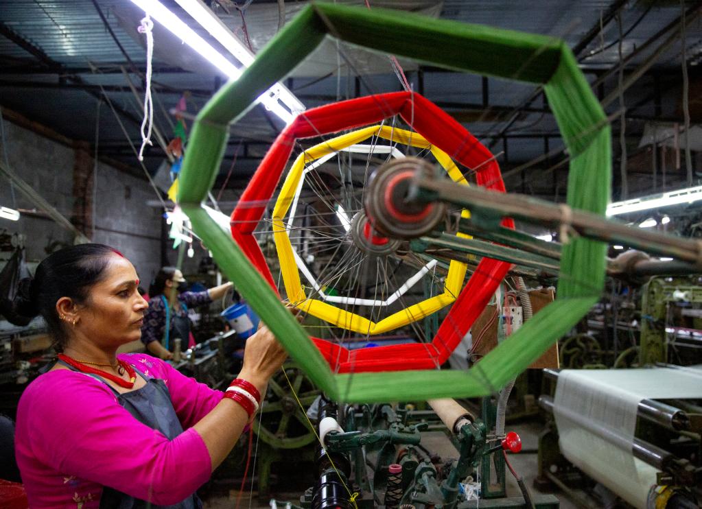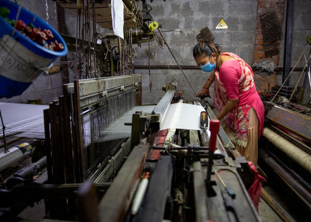 10月10日,一名工人在尼泊尔加德满都的一处披肩工厂工作。 随着冬季临近,披肩等织物的需求有所提升。 新华社发(苏拉韦·什雷斯塔摄)pagebreak