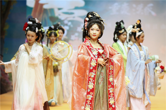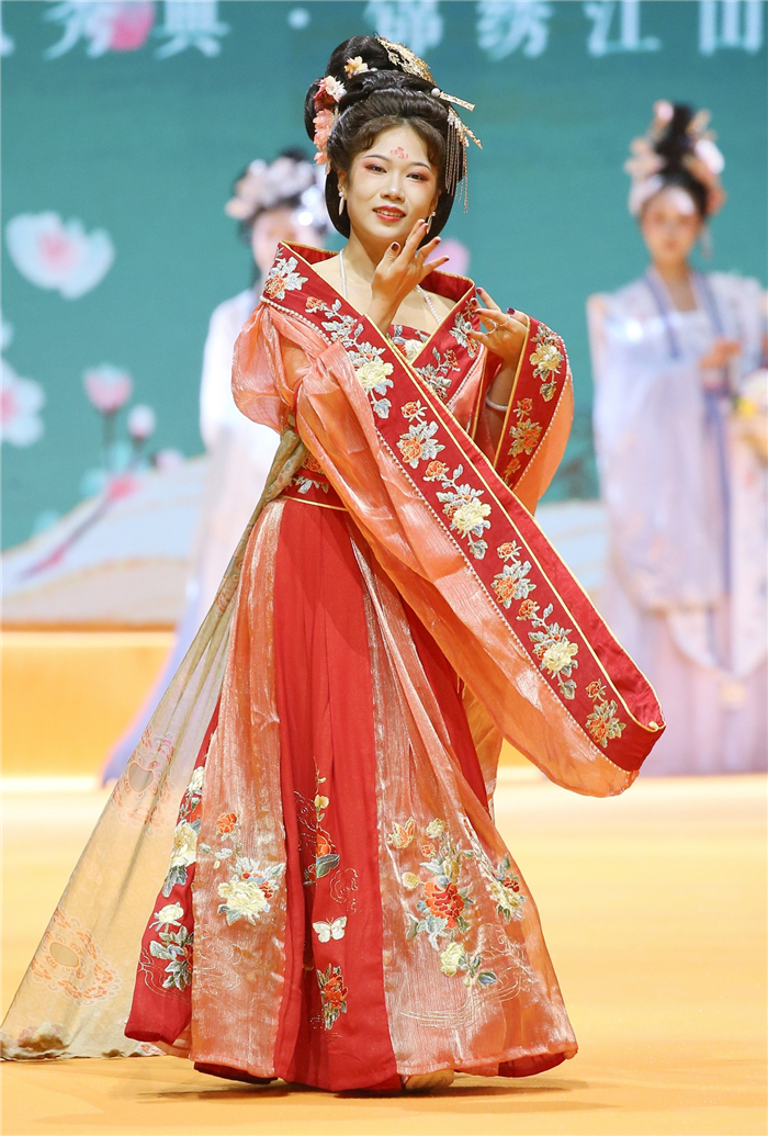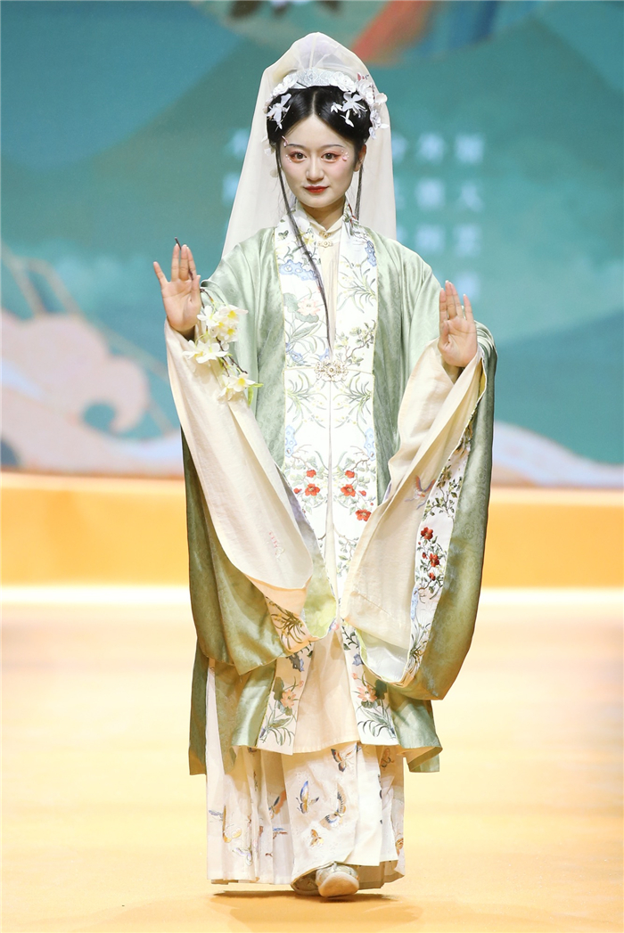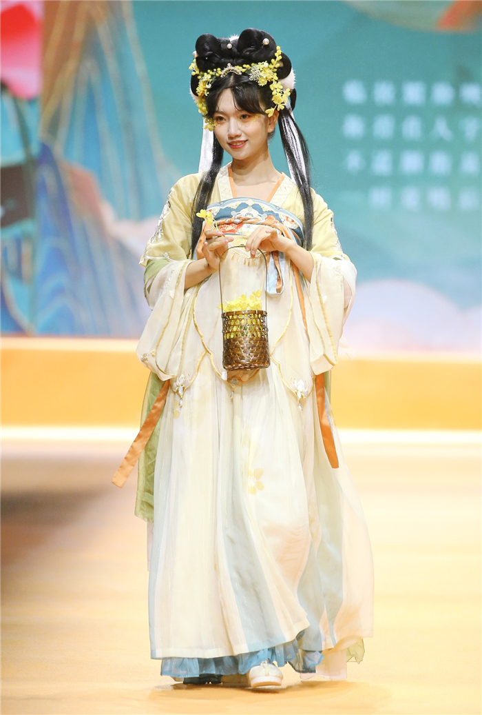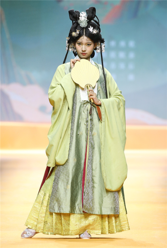 杭州一柒文化艺术有限公司带来的作品以“锦绣江山”为魂,传统汉服为意,次第铺陈“魏晋风骨”、“盛唐风韵”、“宋梦风雅”、“大明风华”,达成古与今、现代时尚与传统文化之间的基因共振,织造华夏传统千年锦绣。