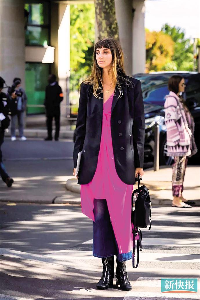 今年流行的“正装运动风”也很适合用连衣裙与裤子搭配呈现,但运动裤要注意选挺阔板型的,不容易显臃肿。