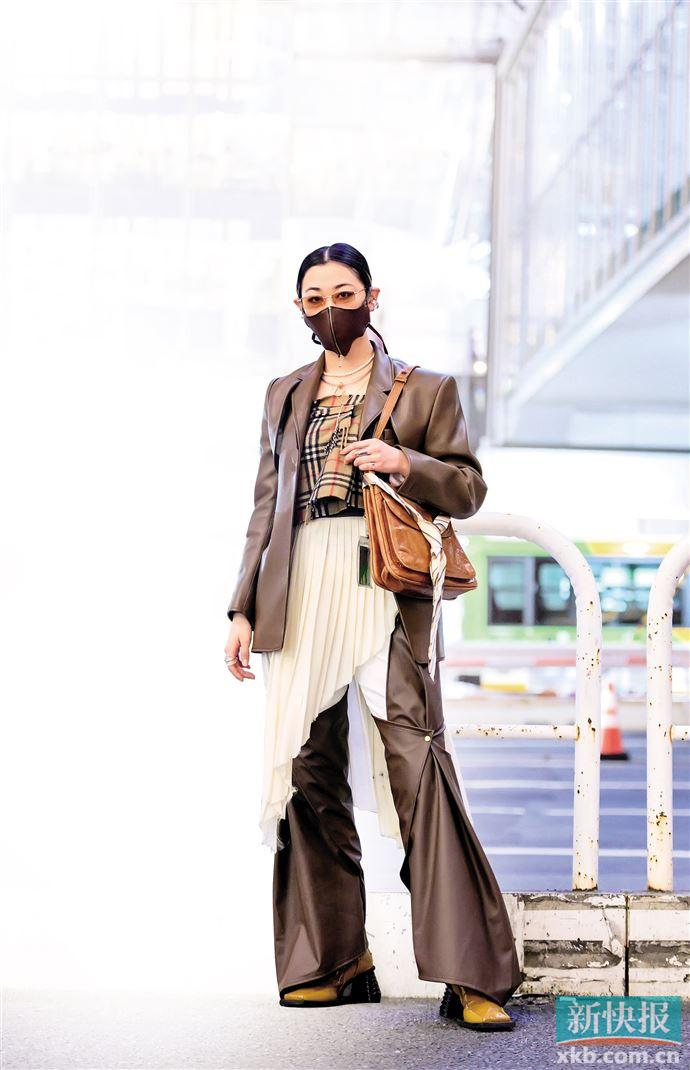 裙摆和裤子面料都比较轻薄飘逸的单品更适合叠搭造型。