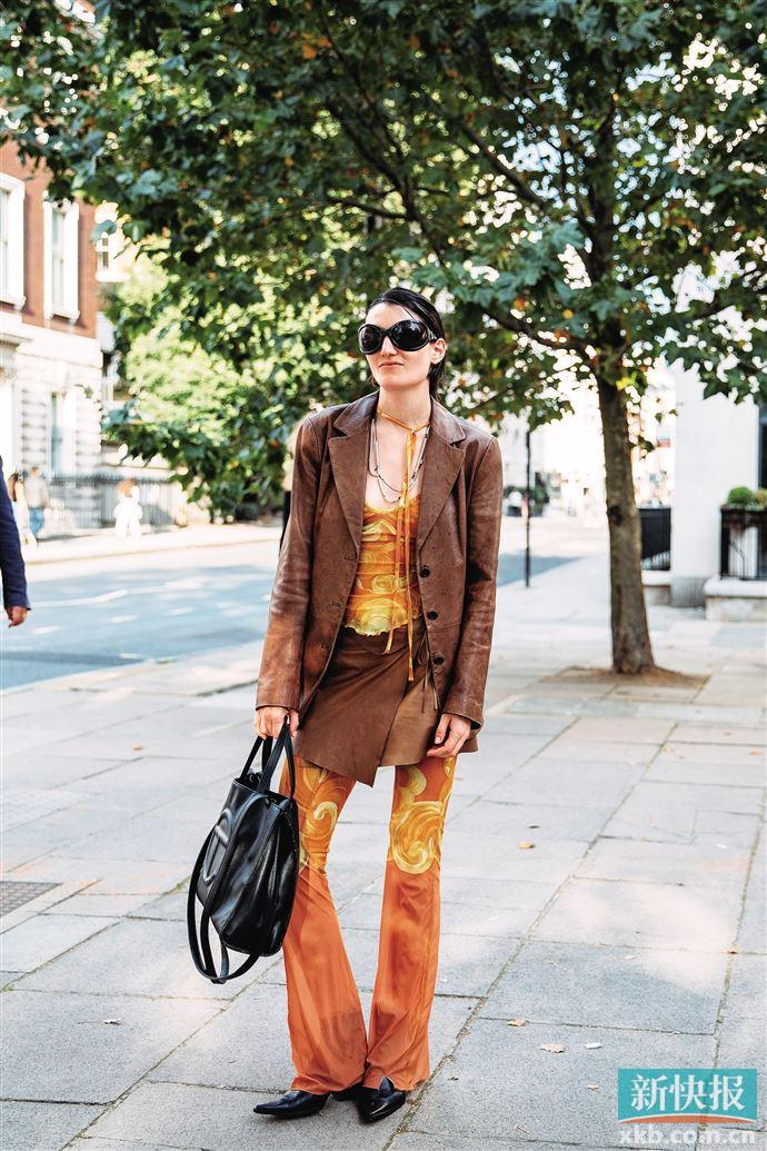 用大印花丝巾代替长裙,与裤子叠穿是省钱又时髦的穿搭思路。