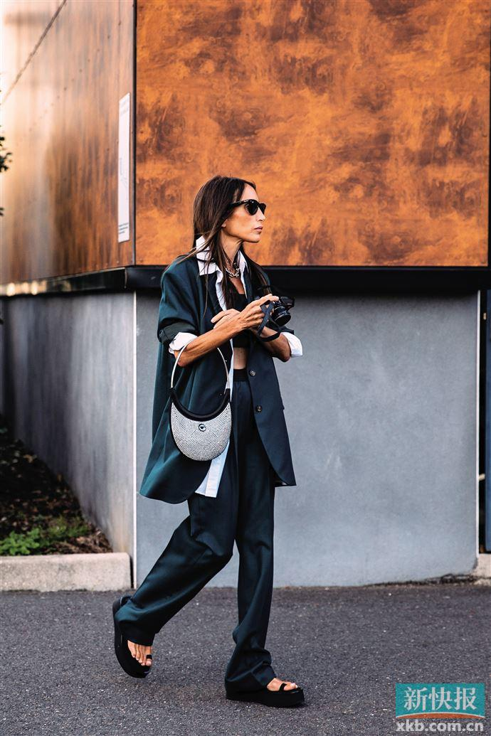 相比将衬衫束进去的方式,不塞下摆避免了严肃,即使西装、衬衫和西裤这样的通勤三件套也能穿出时髦感,关键在衬衫下摆要比西装略长且敞开下摆或搭配修身半裙,更显优雅。