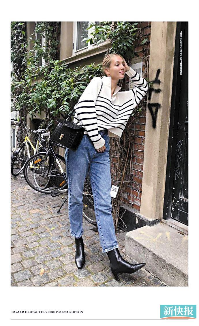 如果讲究款式细节,不妨根据各自身材特点来选,更好地发挥条纹毛衣的优势。
