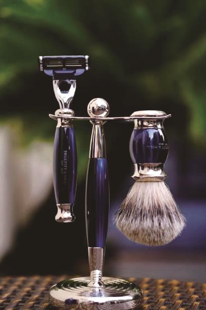 值得一提的是作为剃须套组的爱德华系列,刀刷架齐全。胡须刷采用最好部位的獾毛,以手工扎制成扇形,并以纯手工修剪成型,可重复使用近十年;手动剃须刀可使胡须朝着一个方向修剪,减少损伤;架子可作为装饰架,将前两者有效收纳,干净整洁。