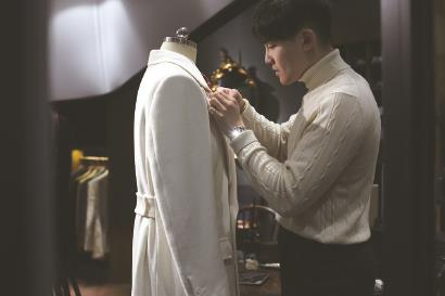 刘子洋是一位有着与众不同的学业背景的海派绅士,16岁留学美国,由于家人寄予他继承服装行业的期望,他选择了回国发展。回国后,进入新加坡莱佛士艺术设计学院深造,学成后于去年在上海开设高德翁(Gordyw in)高级私人定制西装店。