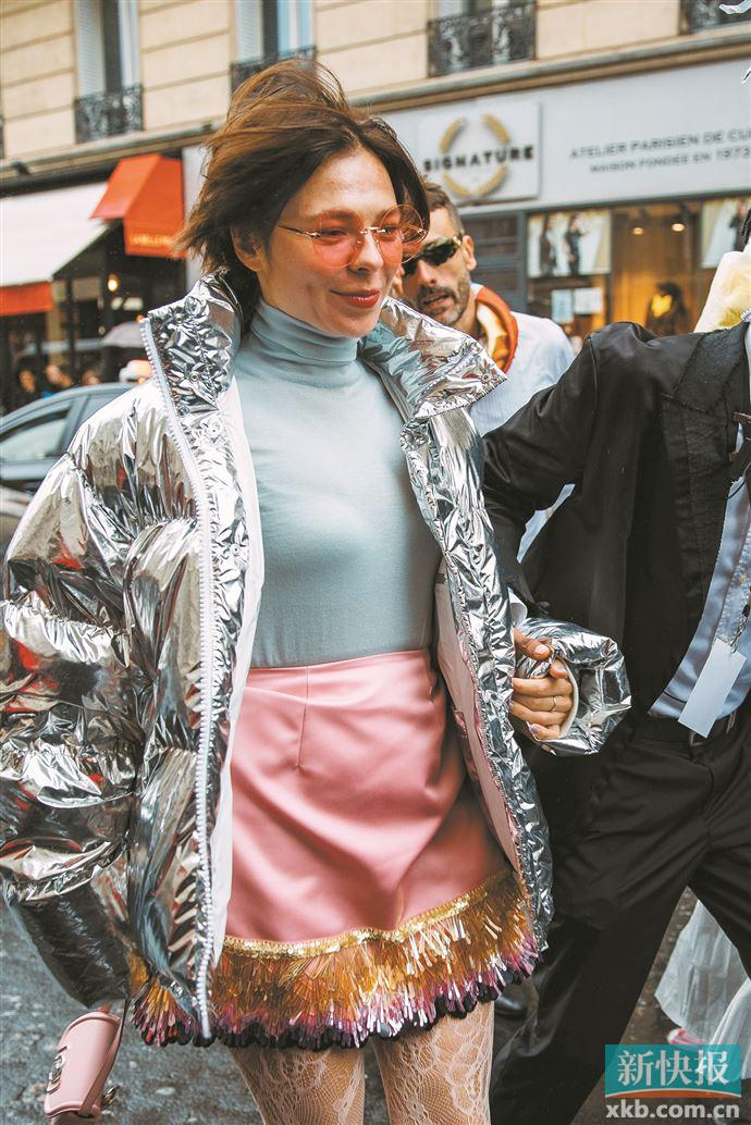 比方说,宽松的面包服内搭紧身打底衫以及高腰裙装或裤装,再配上修饰腿型的靴子,“内紧外松”“上宽下窄”,这样的视觉效果与适当露肤异曲同工。