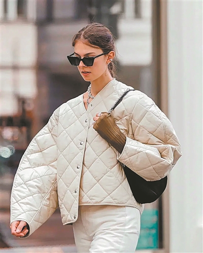 广州资深潮牌买手Grace告诉记者,比如Bella Hadid街拍时穿着的绗缝外套,实际上是来自Burberry的设计,宽松轮廓结合小翻领细节,衣身上的绗缝菱格纹也是源于一种叫“Quilted Jacket”的传统英国猎装。