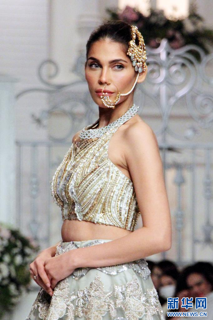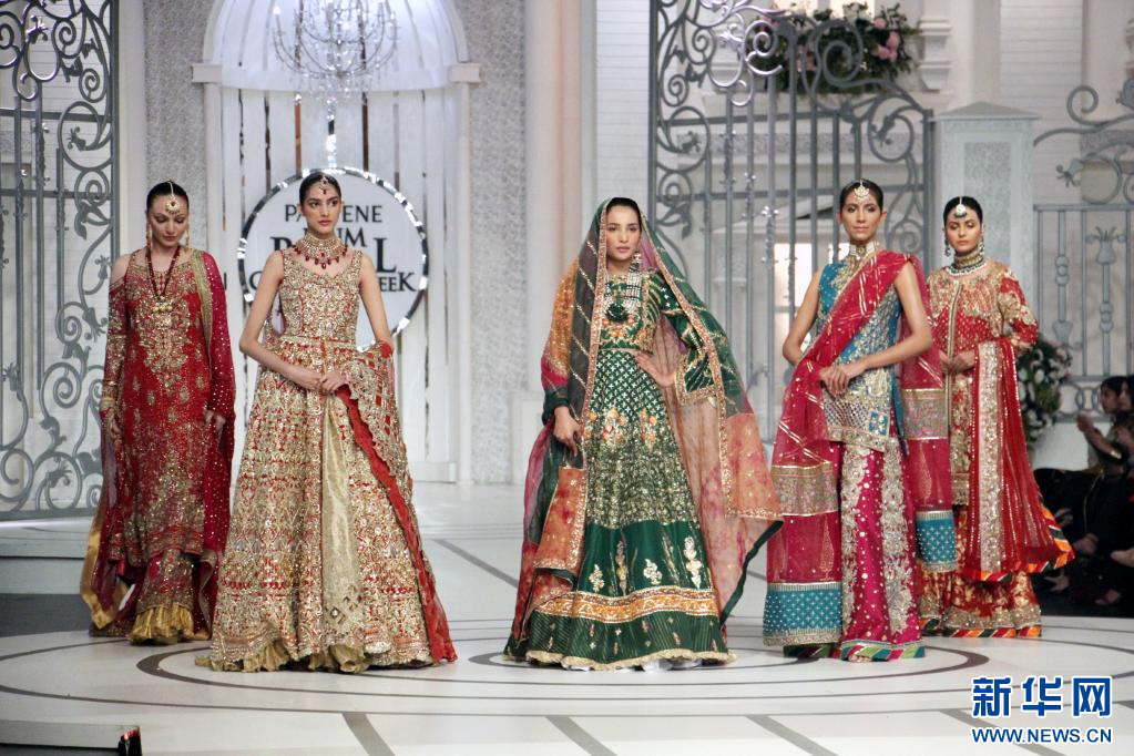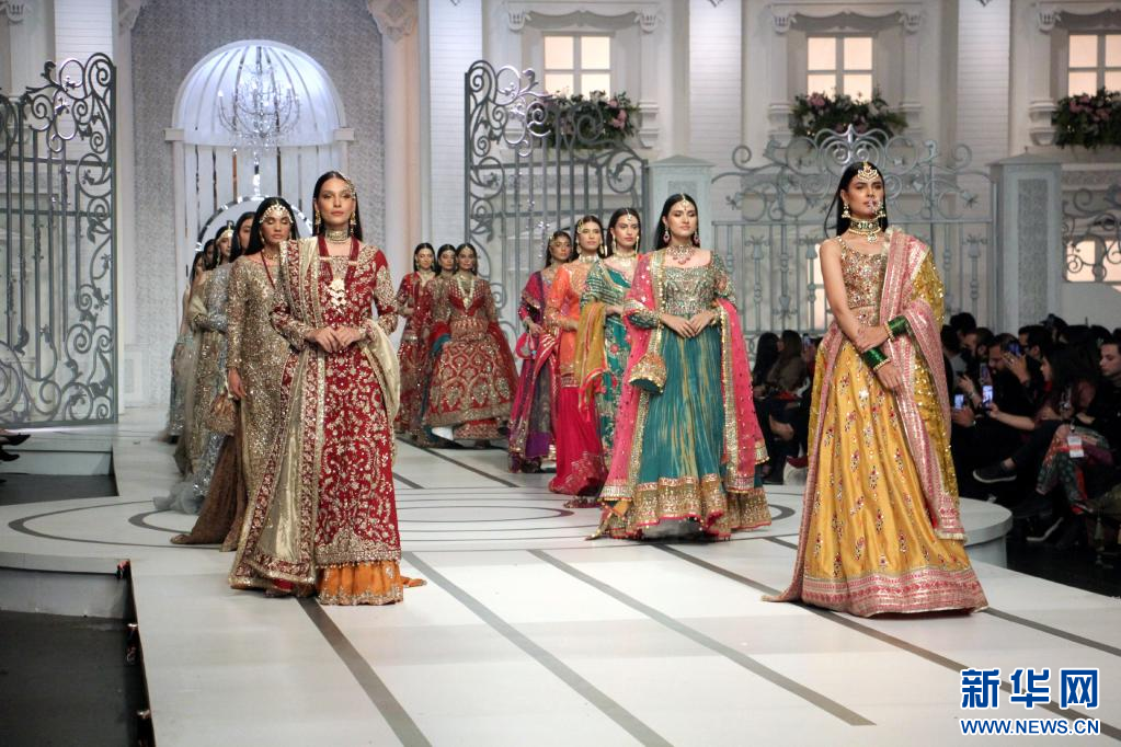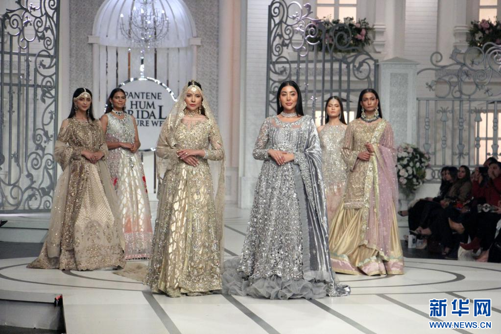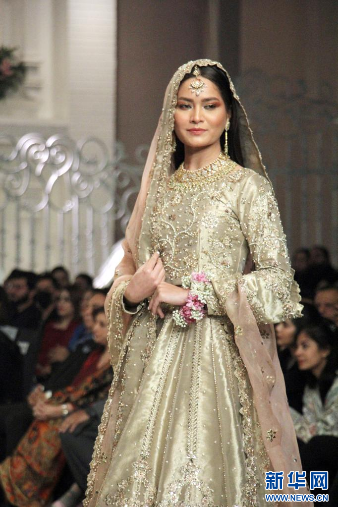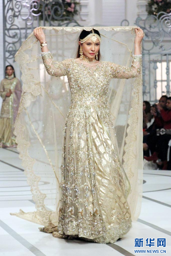 12月12日,模特在巴基斯坦拉合尔举行的新娘时装周活动上展示作品。