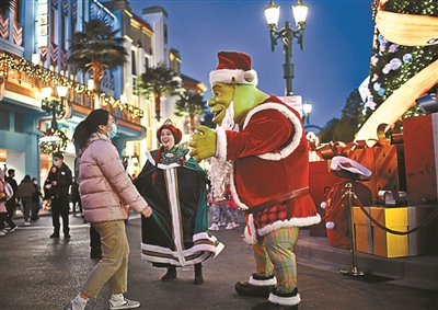 北青报记者发现,作为今年中秋节才正式亮相的主题公园,北京环球影城开启了它在北京的第一个冬季,首个季节性主题活动——“北京环球度假区冬季假日”体验也于2021年12月3日至2022年1月8日期间亮相。在浓浓的节日氛围中,游客可尽情享受环球经典的沉浸式娱乐体验,欣赏到流光溢彩的节日装饰,品尝多达80款精心烹制的主题餐饮,选购上百款冬季限定潮流商品。除了可以体验到这些好吃、好看、好玩,冬日的环球影城还推出了一系列服务保障措施。