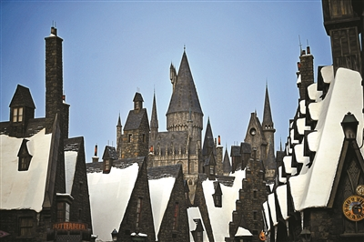 保证一年四季可见绿的同时,北京环球影城里局部的小景观也都有讲究。哈利·波特的魔法世界TM一直是北京环球影城最受欢迎的景区之一。“这里是网红打卡地,所以我们在景观设计的时候充分运用了深景、远景和近景的搭配,让游客从排队区开始就能沉浸在电影的主题里。”冬天下雪后的霍格沃茨也成为了一道独特的风景,丰富了游客的沉浸式体验。