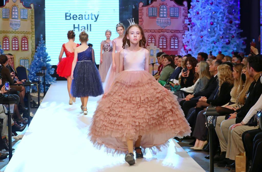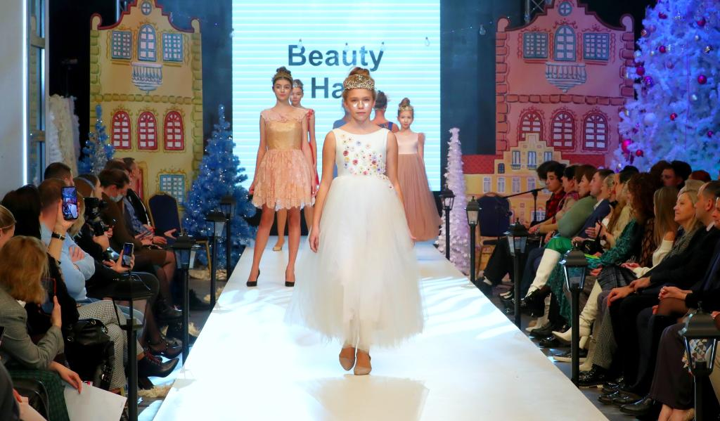 当日,明斯克一所学校举办圣诞时装秀。
