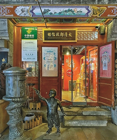 另外,在烟袋斜街里有一家隐秘的霸气邮局,那就是有帝王气息的大清邮政信柜,也是和故宫合作的文创店,带娃来,分分钟穿越时光。在这家店有很多隐藏玩法,买文创、集印章、邮信件……而店员可以把20余种印章背后的故事都娓娓道来。在这里写下新年寄语,书写自己的故事,岁月的痕迹历久弥新。
