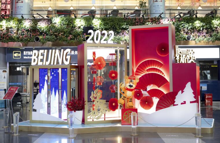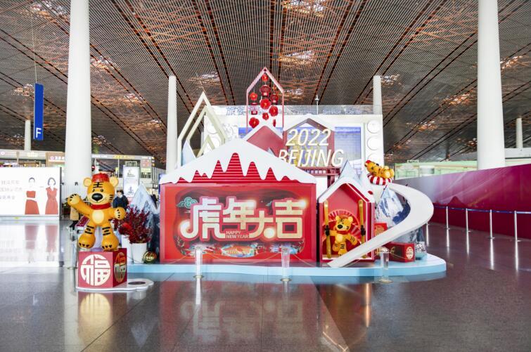 为迎接农历新年,愉悦旅客出行体验,1月10日,“福虎相约,逐梦2022”主题系列节日景观精彩亮相首都机场,为航站楼增添了浓厚的节日氛围。