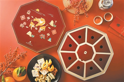 香格里拉集团今年主打产品“招财进宝金币年糕及燕窝礼盒”以优雅的虎年生肖端坐于亭园中的立体造型,守护着盒内由米其林一星主厨精心研制的金币年糕,再搭配由东南亚上乘选材精制而成的即食燕窝,使其成为迎新时节的伴手好礼;徐福记今年继续打造聚福锦礼礼盒为王牌礼盒产品,一箱具备坚果、糖果、饼点一应俱全,性价比高,送礼实惠之选。还有应节应景的虎送福礼箱,利用生肖文化的创新结合,附赠新年相关的虎年红包、日历和老虎折纸,让年货产品与新年的链接更加紧密,让产品更富有文化内涵。