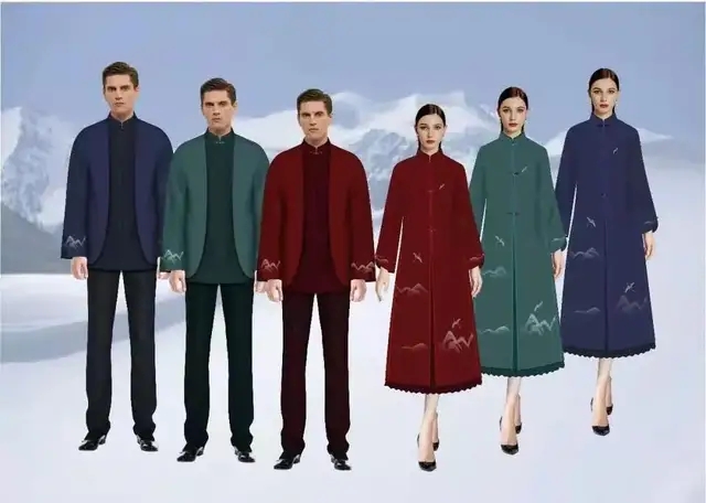 据了解,江苏阳光集团除了为国家冬季运动管理中心设计制作了西服套装系列以外,同时还设计制作了一套中式礼服系列,服装的灵感源自中国传统山水画《千里江山图》和冬奥核心图形中的“赛区山行”。