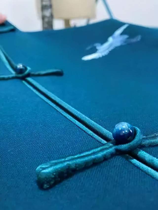 除此之外,设计团队深挖传统色彩文化的创造性转换,紧扣冰雪元素与民族特色,在中式礼服系列中,推出了霞光红、天霁蓝和玉石绿三种颜色供选择:“天际霞光入水中,水中天际一时红”。霞光红,寓意日出东方,代表着热情和希望;天霁蓝,取自中国传统陶瓷珍品霁蓝釉的颜色,似雨过初晴天空之蓝,犹如水洗,清新淡雅;“兰陵美酒郁金香,玉碗盛来琥珀光。”玉石绿,则如盛满佳酿的玉碗,晶莹润泽,典雅迷人。