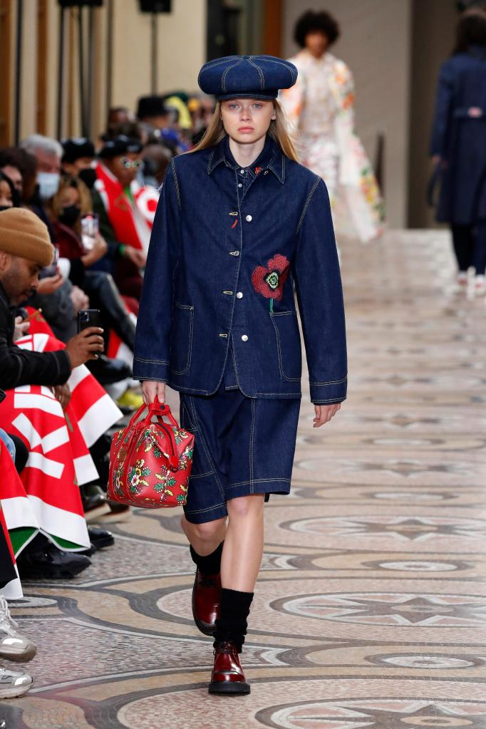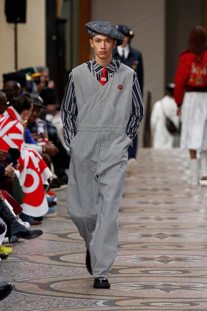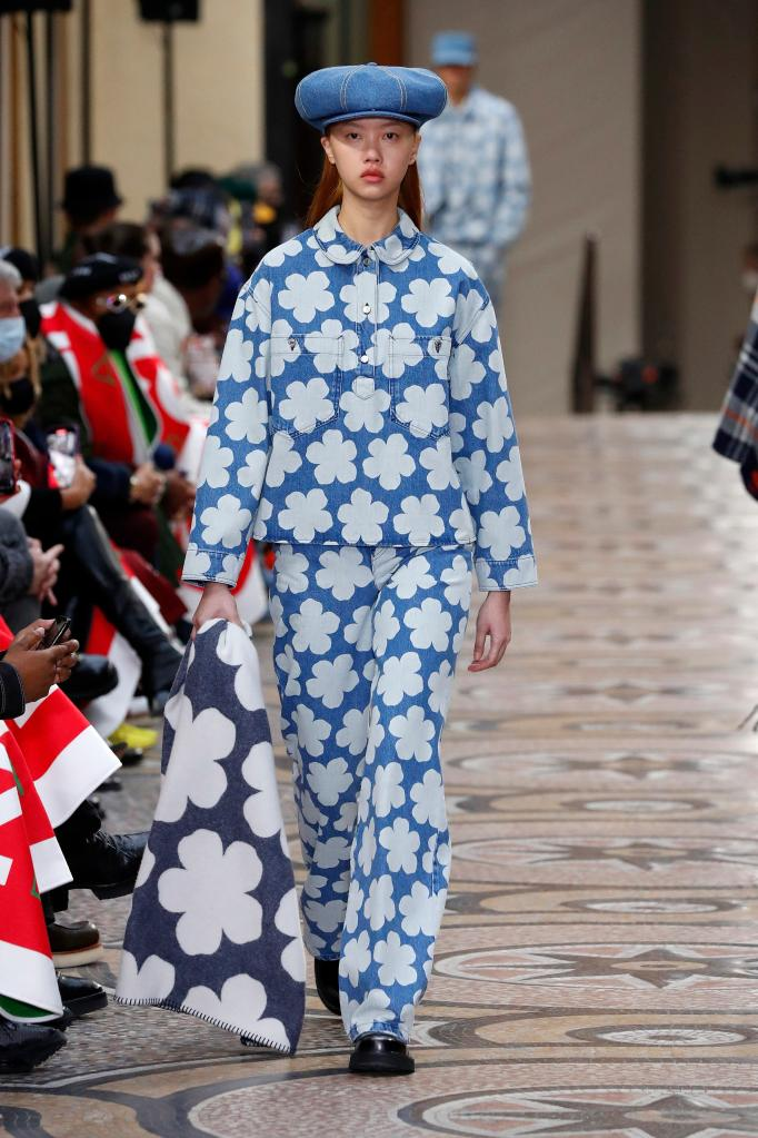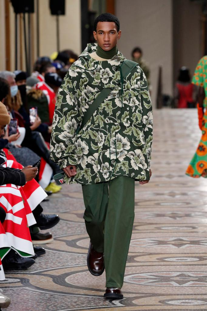 1月23日,模特在法国巴黎男装周展示KENZO品牌2022-2023秋冬新品时装。