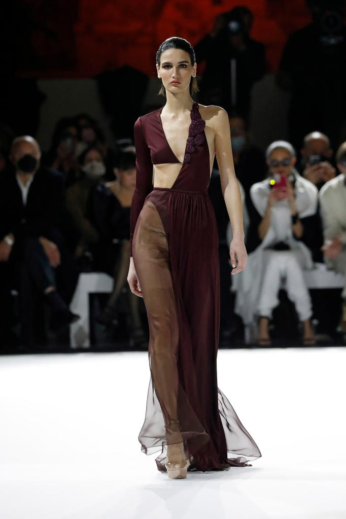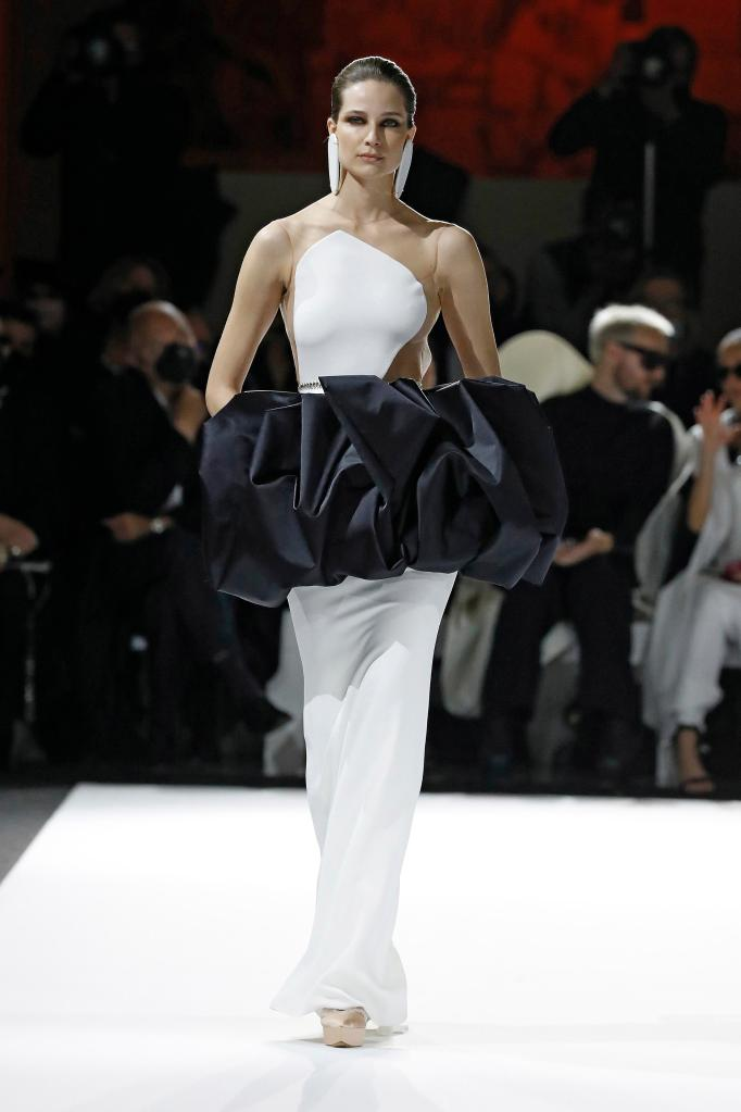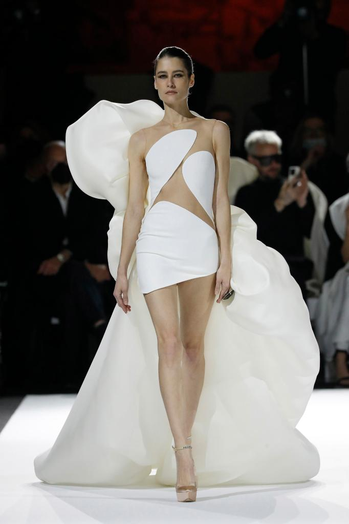 1月25日,在法国巴黎高级定制时装周上,模特展示Stephane Rolland品牌2022春夏新品。