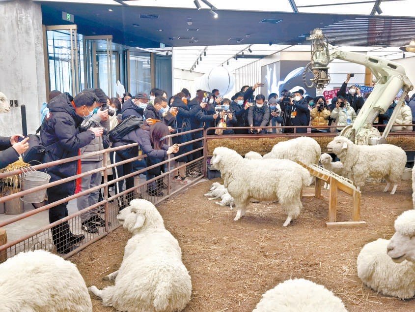 记者们一进门就被“未来农场”里逼真的机器羊群所吸引。