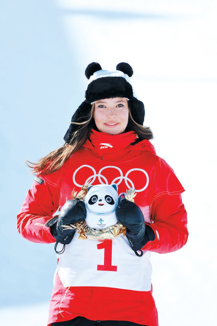 2月18日,谷爱凌自由式滑雪U型池夺冠。她领奖时戴着的熊猫帽子吸引了许多年轻人的注意,成了爆红的“冠军同款单品”。