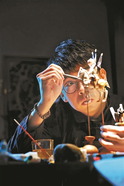 “95后”“北大毕业”“国家非遗传人”“最强大脑选手”这些元素齐集于郎佳子彧一身,他用自己的方式做非遗传承,重新诠释和表达这项传统工艺。“可能大家觉得我本身就是一种‘冲突’,在一个很传统的行业,但却是个很年轻的人在做,然后又有比较高的学历,这是对刻板印象的打破。”郎佳子彧说。