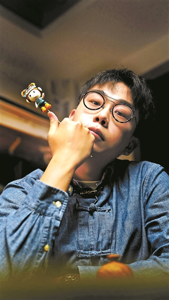 去年春节后,郎佳子彧成立了传承“面人郎”为业务的春喜工作室,而后他的两位同学加入,三个大男孩每天一边“玩”一边工作,在“玩”中想点子,在工作中也享受“玩”的乐趣。大家既做着“面人郎”的传承工作,又做着新媒体工作。作为创始人,郎佳子彧既捏面人又录Vlog,频繁跑合作活动、开发文创产品。不到一年的时间,工作室运转得比较成功,也有不少收获。