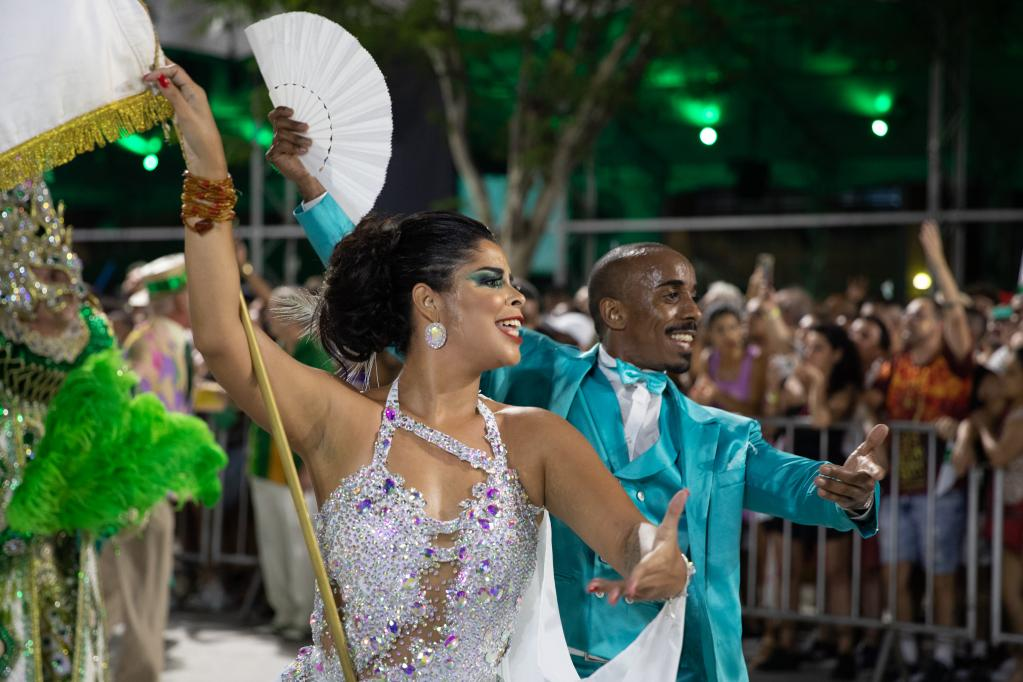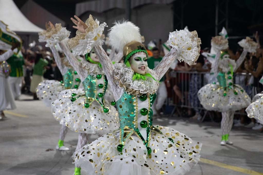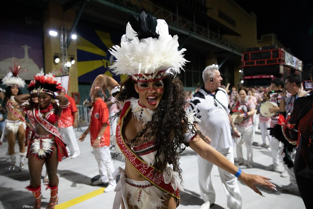 当日,来自巴西里约热内卢桑巴之城的12所桑巴舞特级学校举行活动,庆祝狂欢节假期到来。2022年巴西的狂欢节假期为2月26日至3月1日。