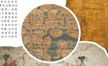 随着时间的推移,经由丝绸之路上发生的文化融合越发深刻和频繁。魏晋南北朝时期,原本为中国所创且独有的育蚕技术沿丝路西传。这在“魏晋社会连环画”甘肃高台壁画砖上多有展现。画像砖上的采桑图、采帛机丝束图、晾衣图、剪布图、开箱图通过“砖”(画面)表现采桑养蚕、缫丝织布等日常生活场景,佐证了当时养蚕和纺织技艺的传播,也让我们从人物着装上看到了当时流行服饰的剪影。