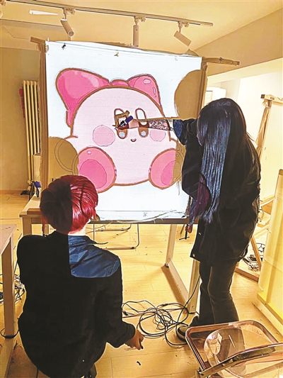 北青报记者体验了整个Tufting的制作过程:先选好要打的图片,把图片用投影仪投到画布上,再用画笔在布上勾勒出图案轮廓,然后开始选自己喜欢的毛线颜色;准备工作完成后,进入实操环节,“指导老师”开始教授大家怎么把毛线挂进“突突枪”里,以及“突突”的手法要领,如何确保毛线针扎实、扎直、扎细;学员在空白布上练习成功后,就可以开启真正的“突突突”旅程了。