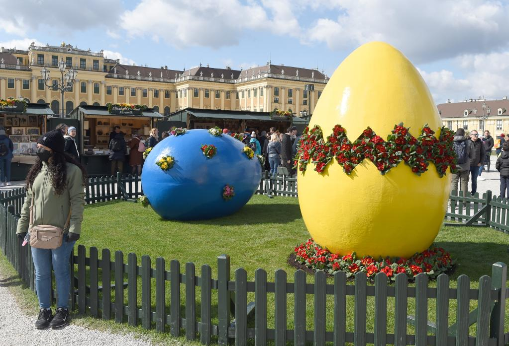 4月2日至19日,奥地利维也纳美泉宫举办复活节市场,色彩缤纷的复活节彩蛋吸引了众多游客。
