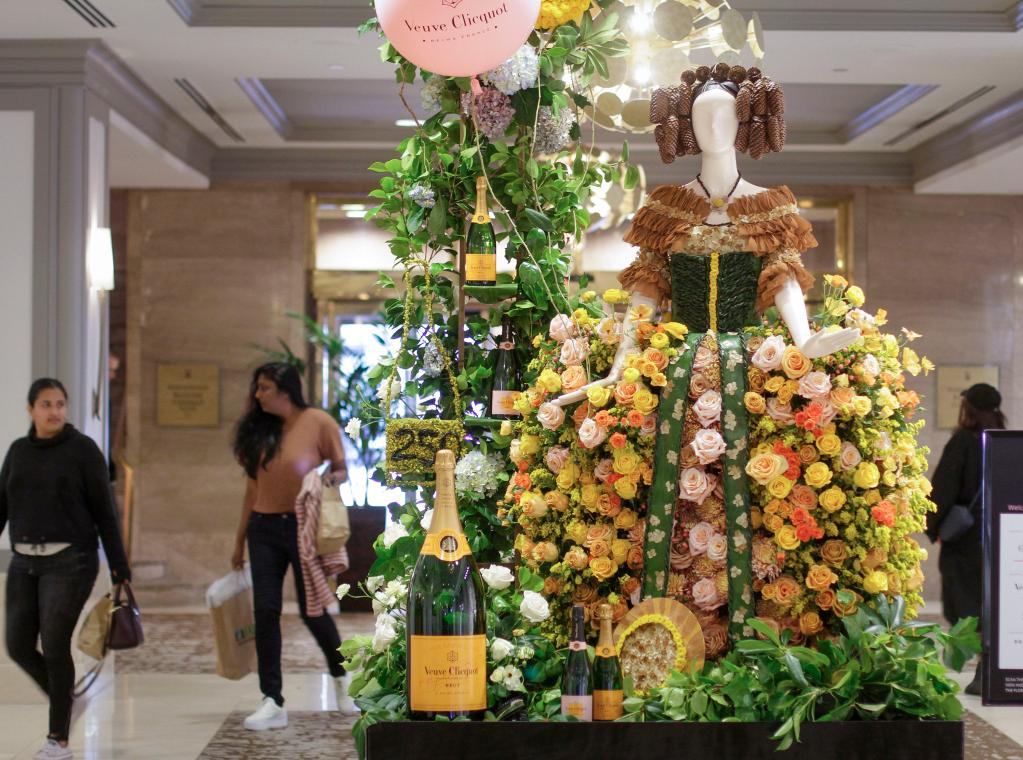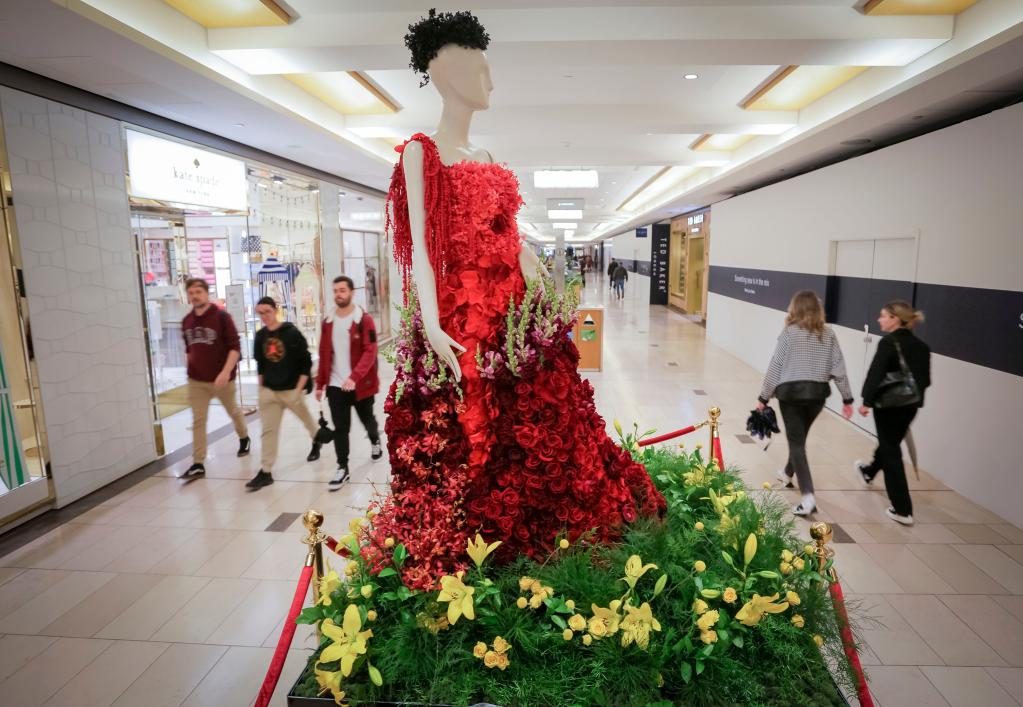 6月3日,在加拿大温哥华,参展花艺装置作品在一家商场内展出。
