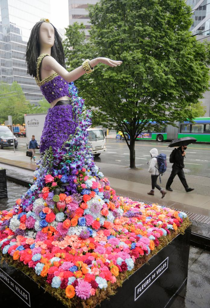 6月3日,在加拿大温哥华,参展花艺装置作品在街头展出。